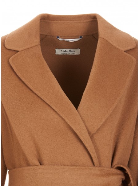Camel wool Arona coat from S Max Mara featuring long sleeves, belt waist, pockets and midi length.