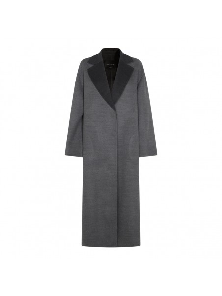Grey wool coat from Fabiana Filippi featuring long sleeves, frontal fastening, long length and pockets.