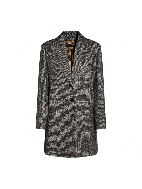 Grey wool coat from Dolce & Gabbana featuring lapel collar, long sleeves, buttons fastening and regular vestibility.