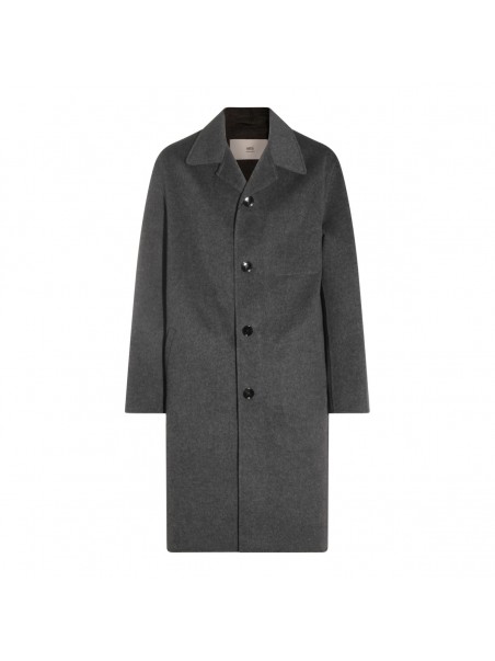 Grey wool coat from Ami Paris featuring classic collar, long sleeves, frontal buttons fastening, pockets and regular vestibility.