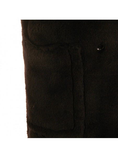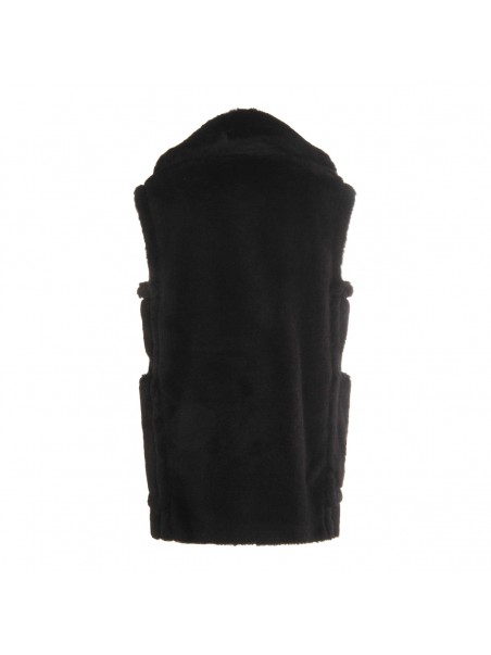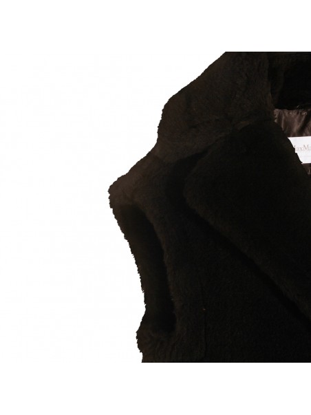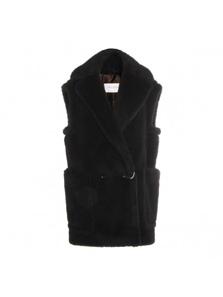 Black wool coat from Max Mara featuring sleeveless, frontal fastening with buttons, pockets and regular vestiiblity.