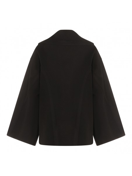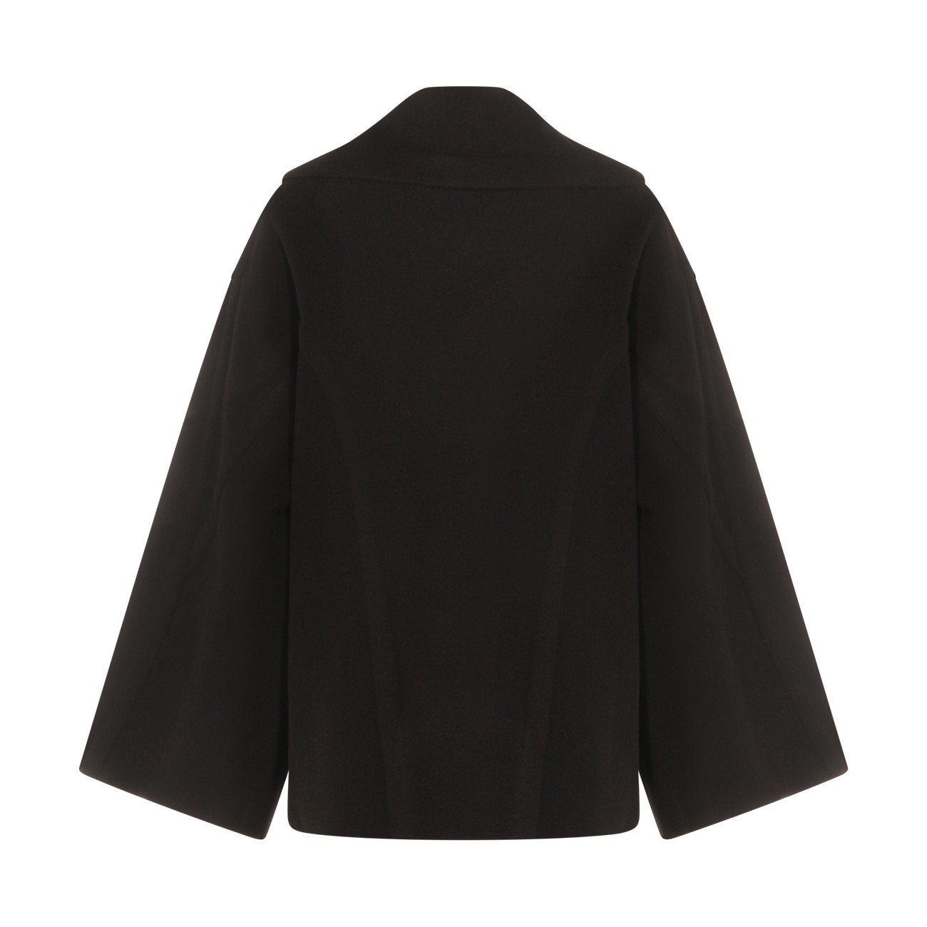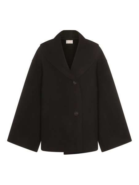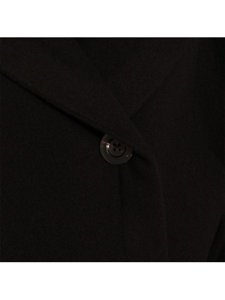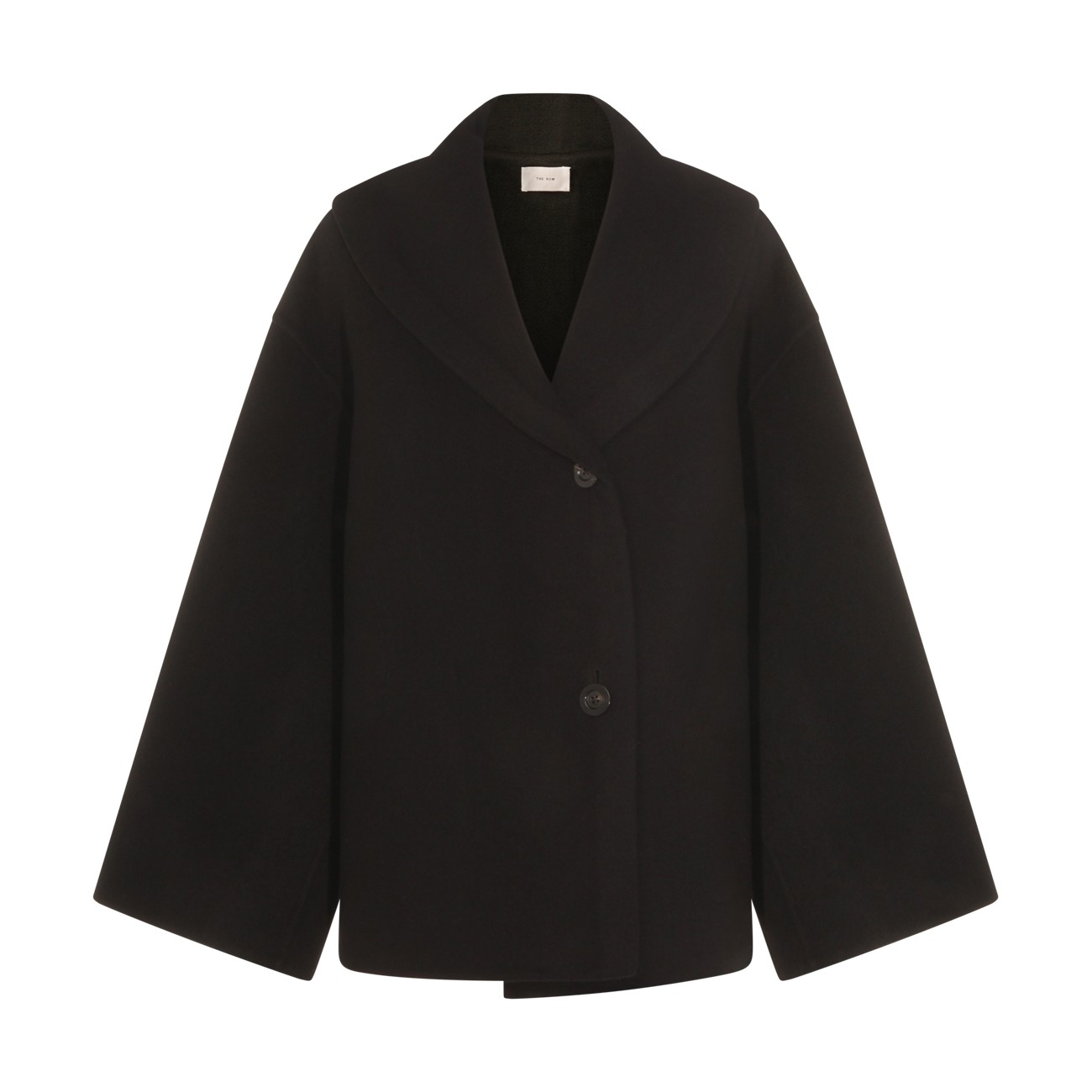 Black wool coat from The Row featuring long sleeves, buttons fastening, pockets and flared shape.