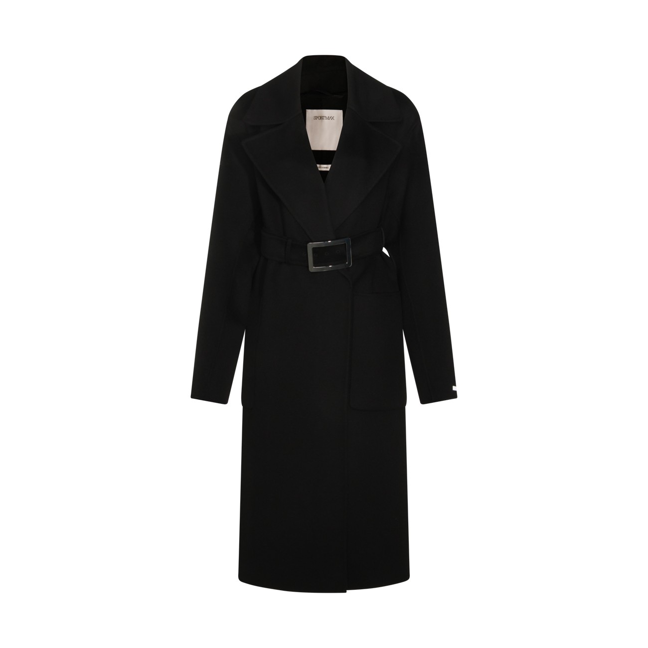 Black cashmere coat from Sportmax featuring long sleeves, belt closure, pockets and all over lenght.