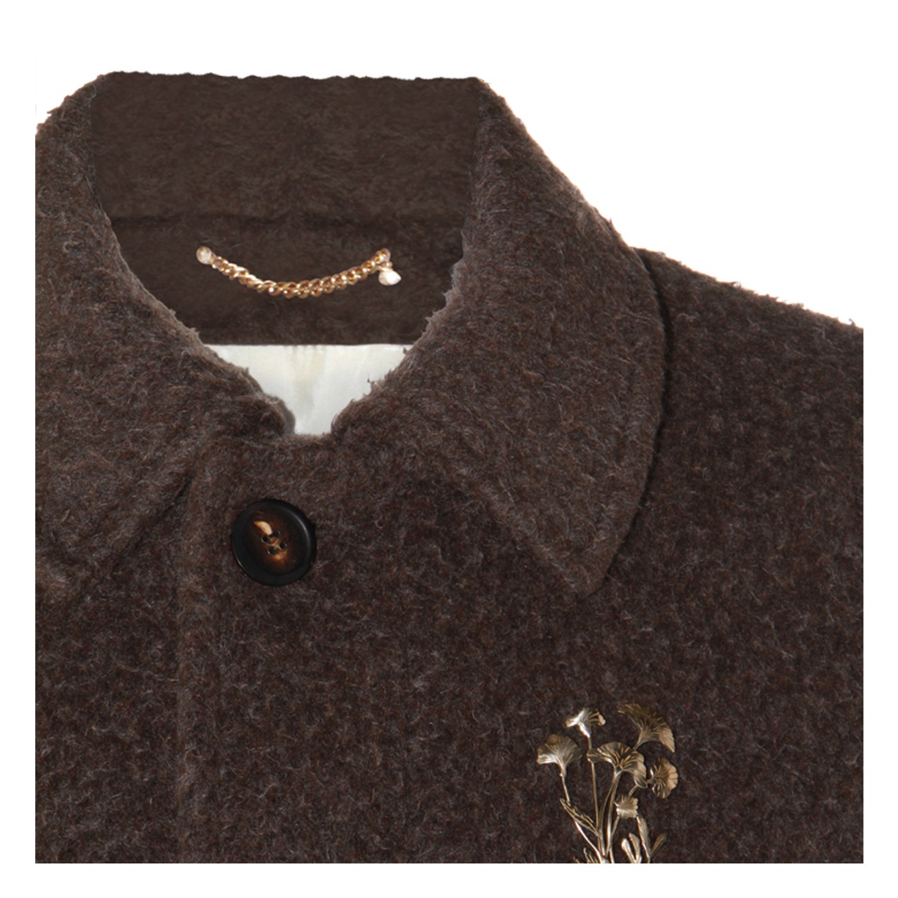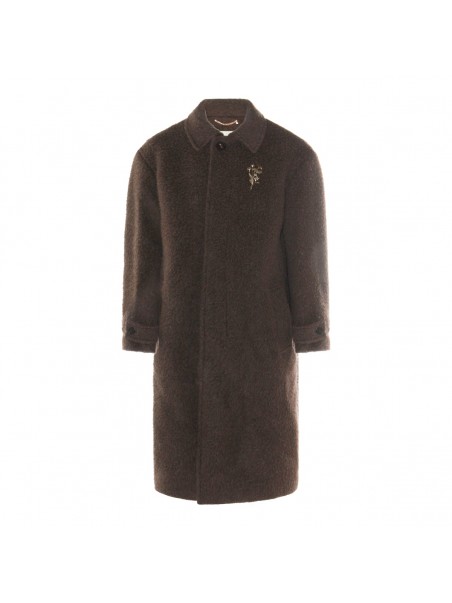 Dark brown cotton coat from Golden Goose featuring classic collar, long sleeves, frontal buttons fastening, pockets and regular vestibility.