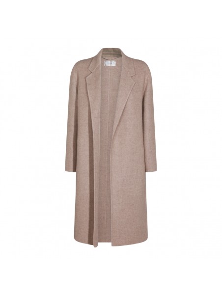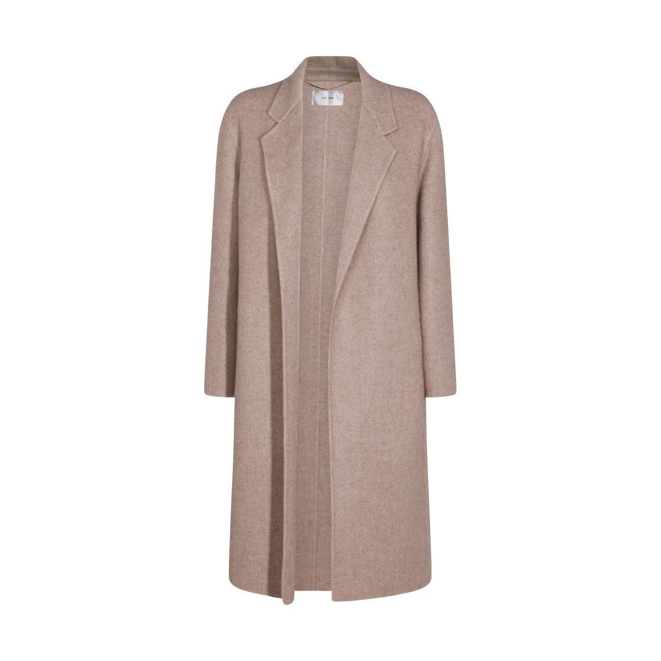 Beige cashmere coat from The Row featuring lapel collar, long sleeves, no closure and soft vestibility.