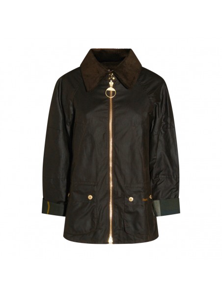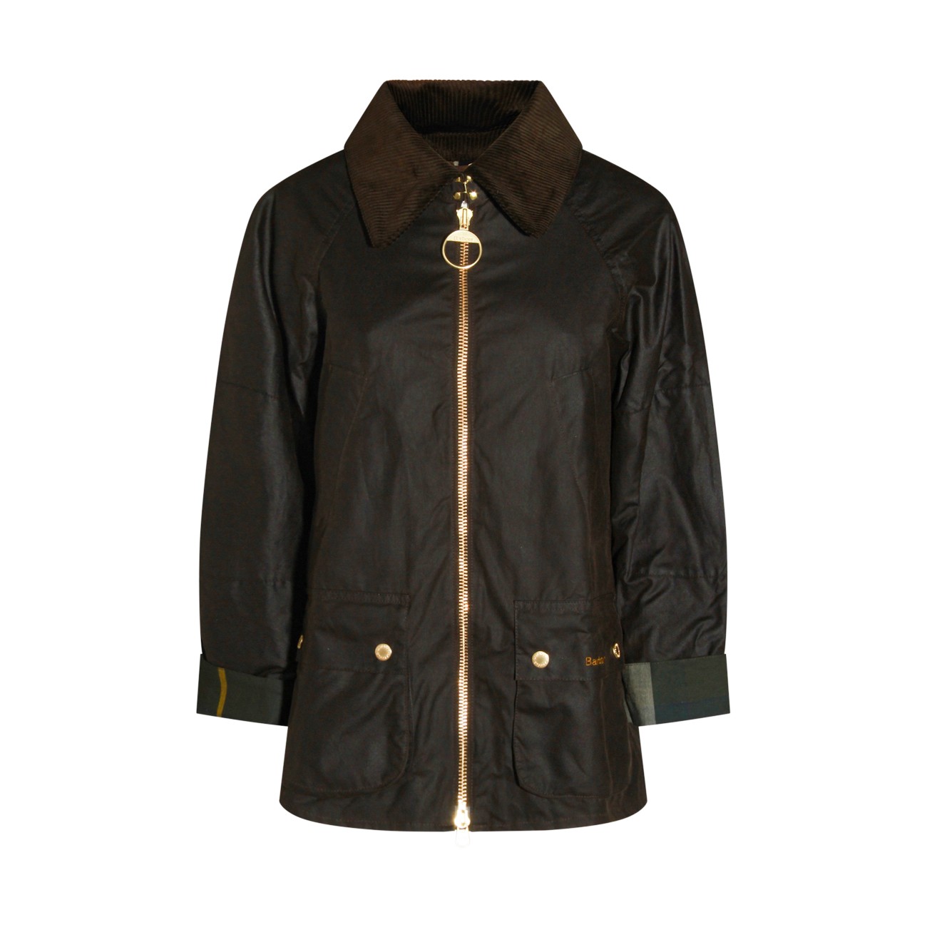 Black cotton Allerston Wax Coat from Barbour featuring classic collar, long sleeves, zip fastening, back split, pockets and regular vestibility.