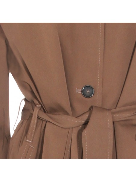 BROWN COTTON MIDI TRENCH COAT