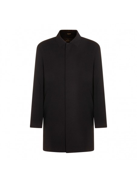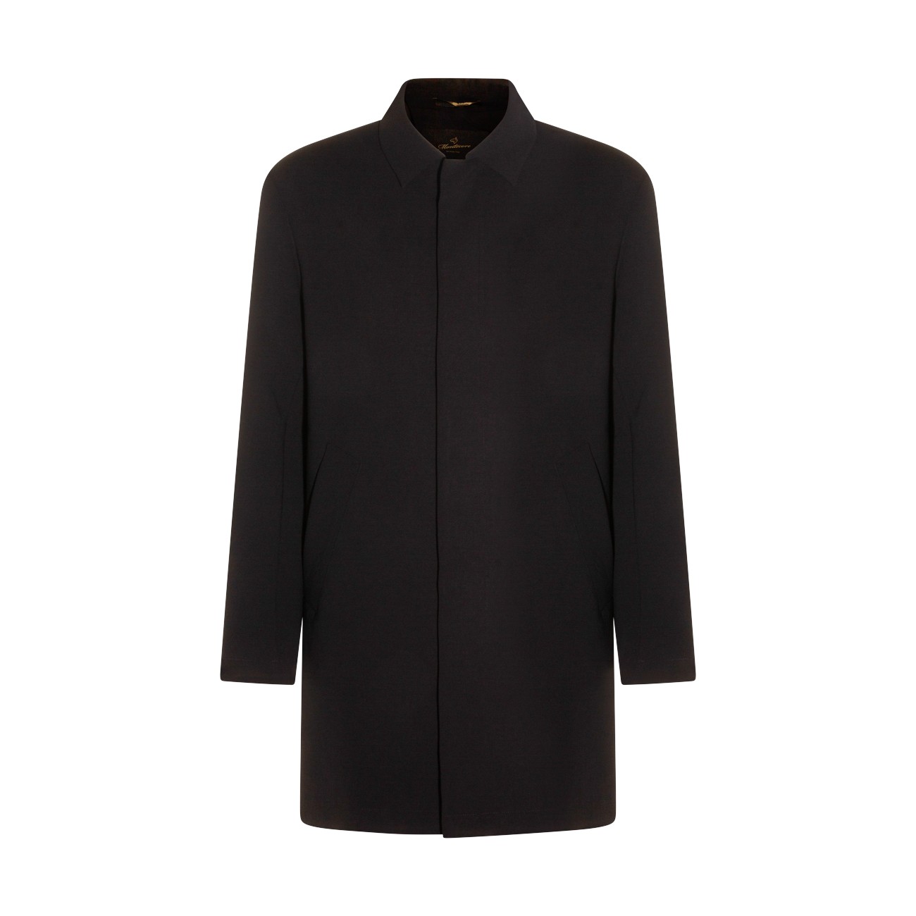 Navy blue coat from Montecore featuring long sleeves, midi length and buttons fastening.