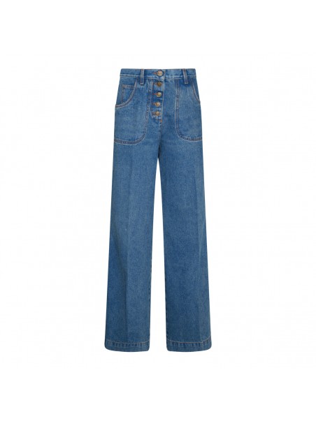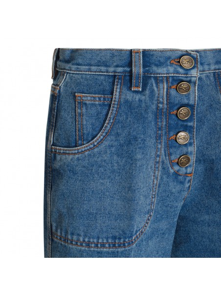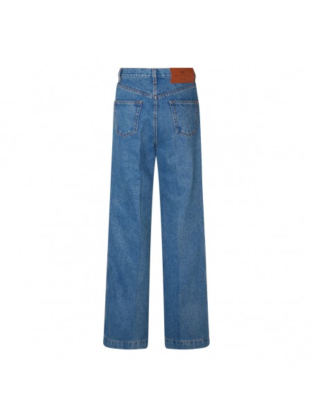 Blue cotton denim jeans from Etro featuring frontal zip and button fastening, belt loops, pocket and flared shape.