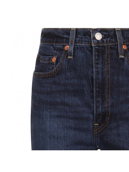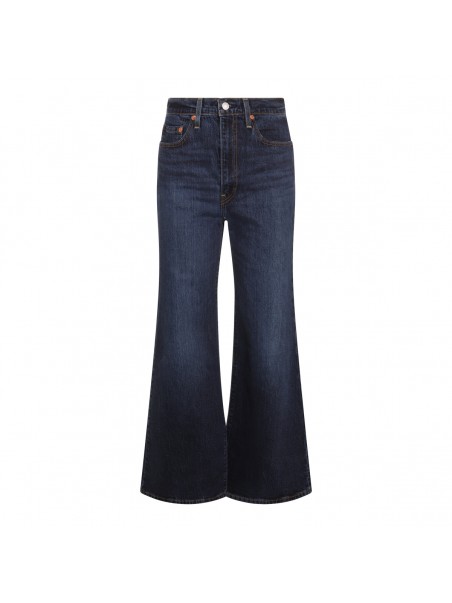 Dark blue cotton denim jeans from Levi's featuring frontal fastening, belt loops, flares shape and regular vestibility.