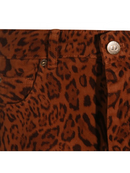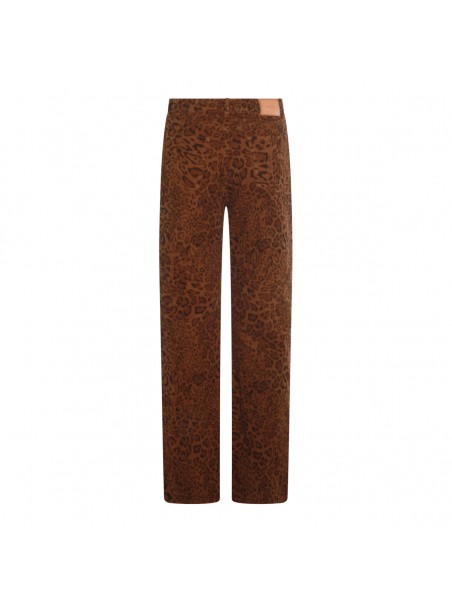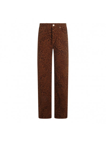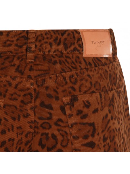 Brown cotton denim jeans from Twinset featuring frontal fastening, belt loops and animal print.