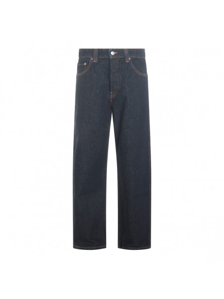 Dark blue cotton jeans from Khaite featuring belt loops, zip and button fastening, classic five pockets and wide leg.