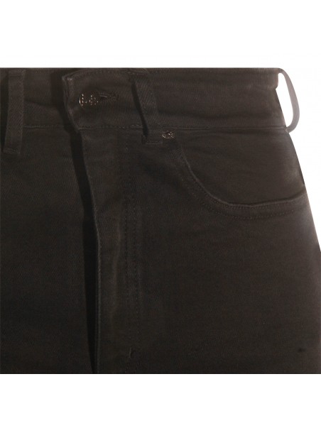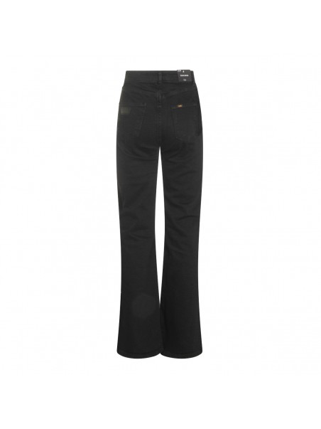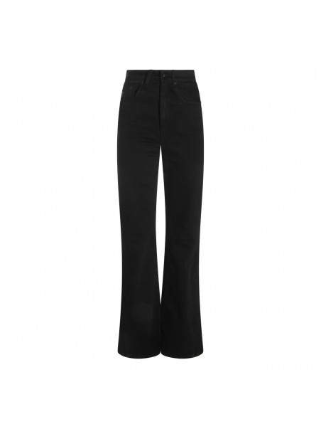 Dark black cotton Palas L34 featuring high waist, belt loops, zip and button fastening, pockets and flared leg.