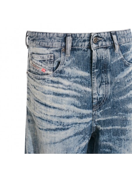 Blue cotton jeans from Diesel featuring belt loops, classic five pockets, washed effect and wide leg.