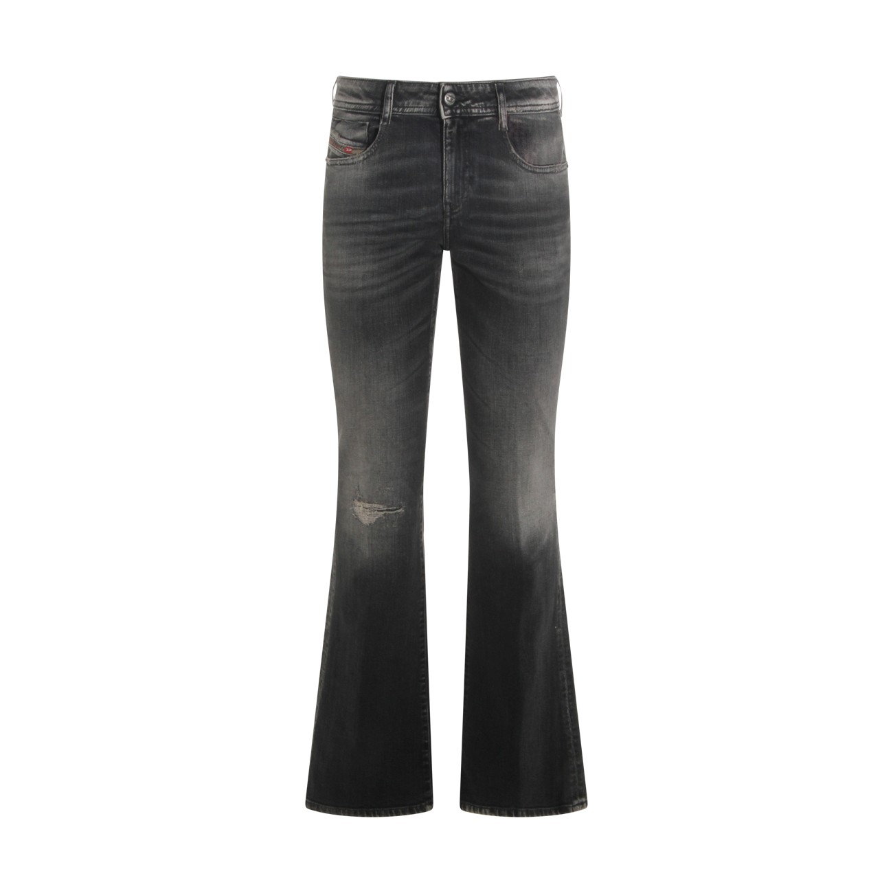 Black cotton jeans from Diesel featuring mid waist, belt loops, zip fastening, pockets and wide length.