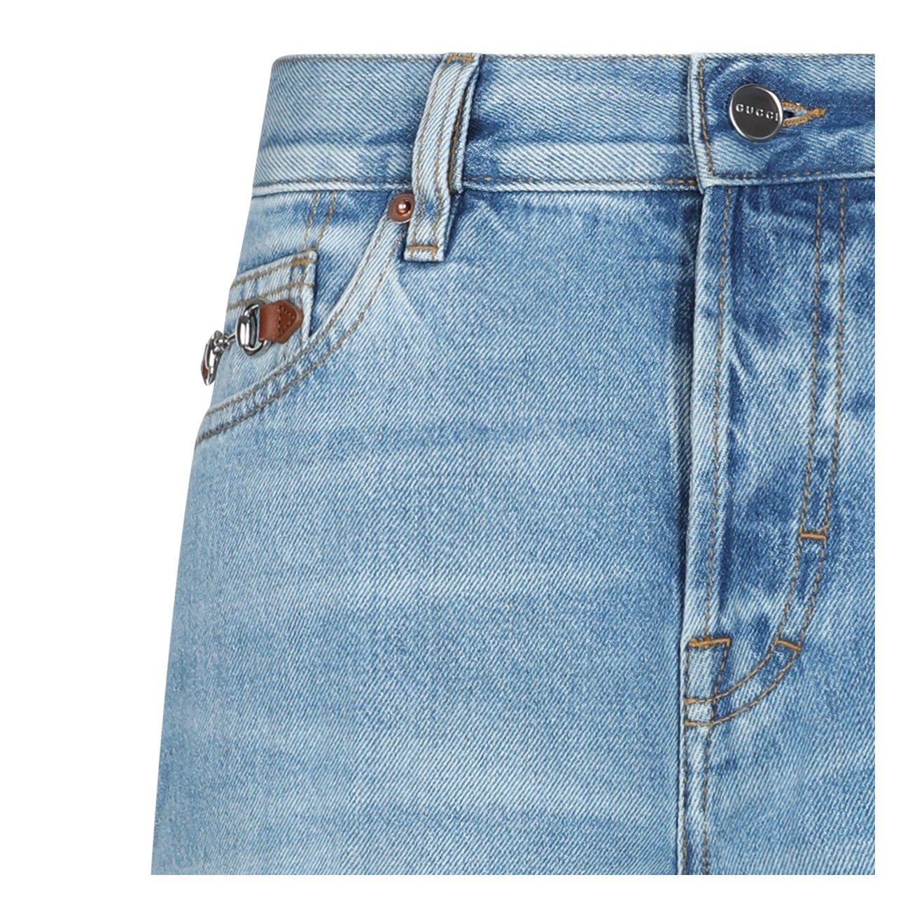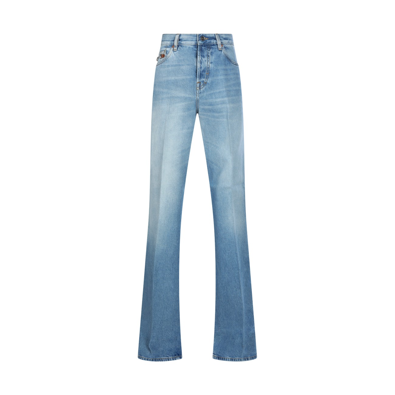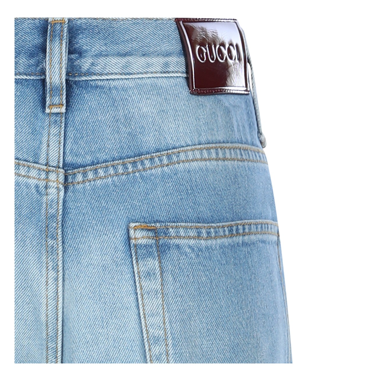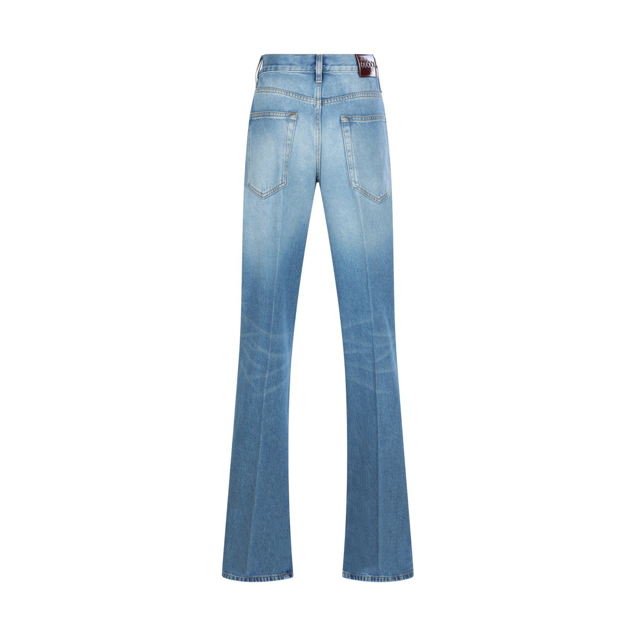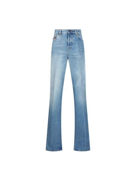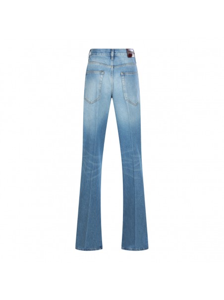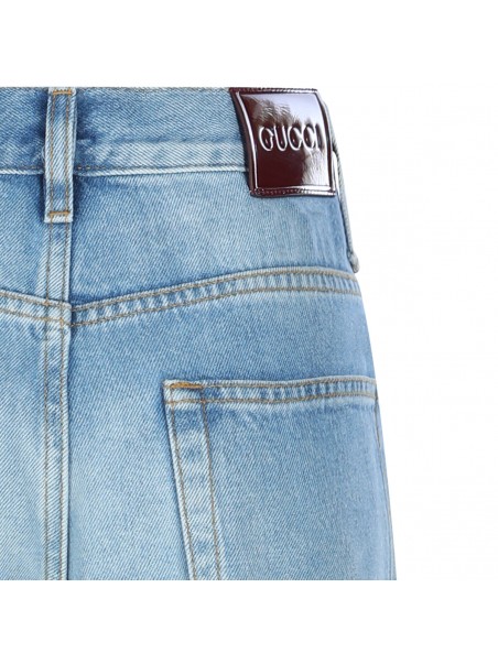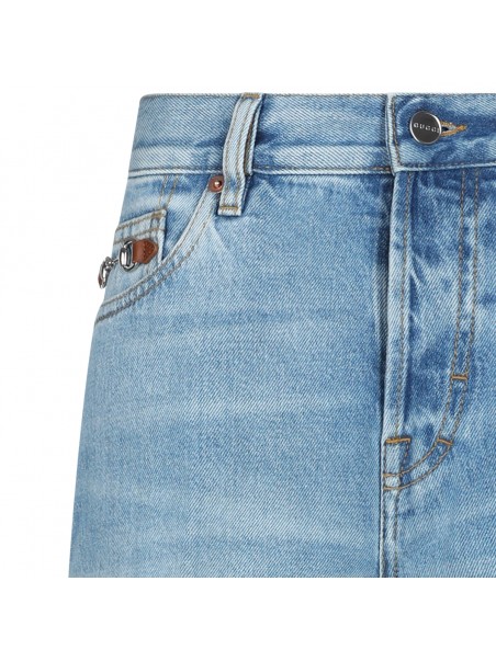Blue cotton jeans from Gucci featuring high waist, belt loops, zip fastening, pockets and wide leg.
