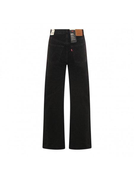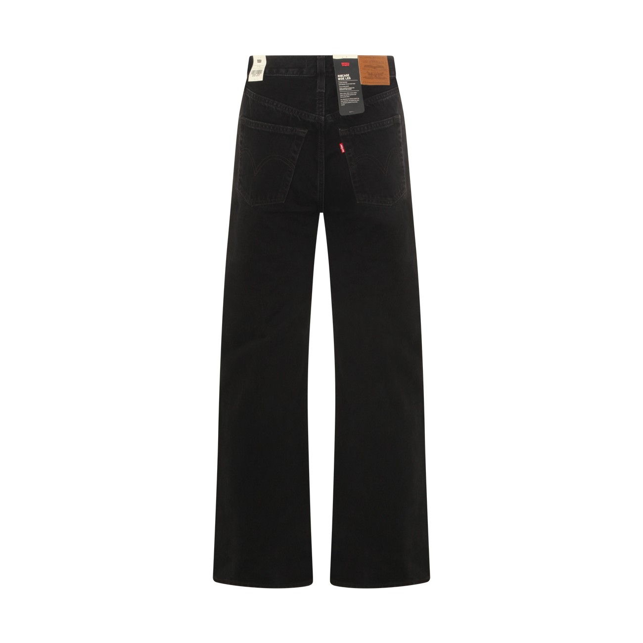 Black cotton Ribcage wide leg H223 jeans from Levi's featuring high waist, belt loops, zip fastening, pockets and wide leg.