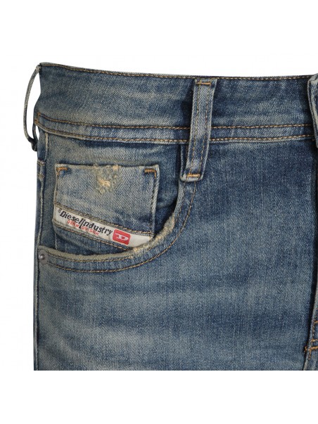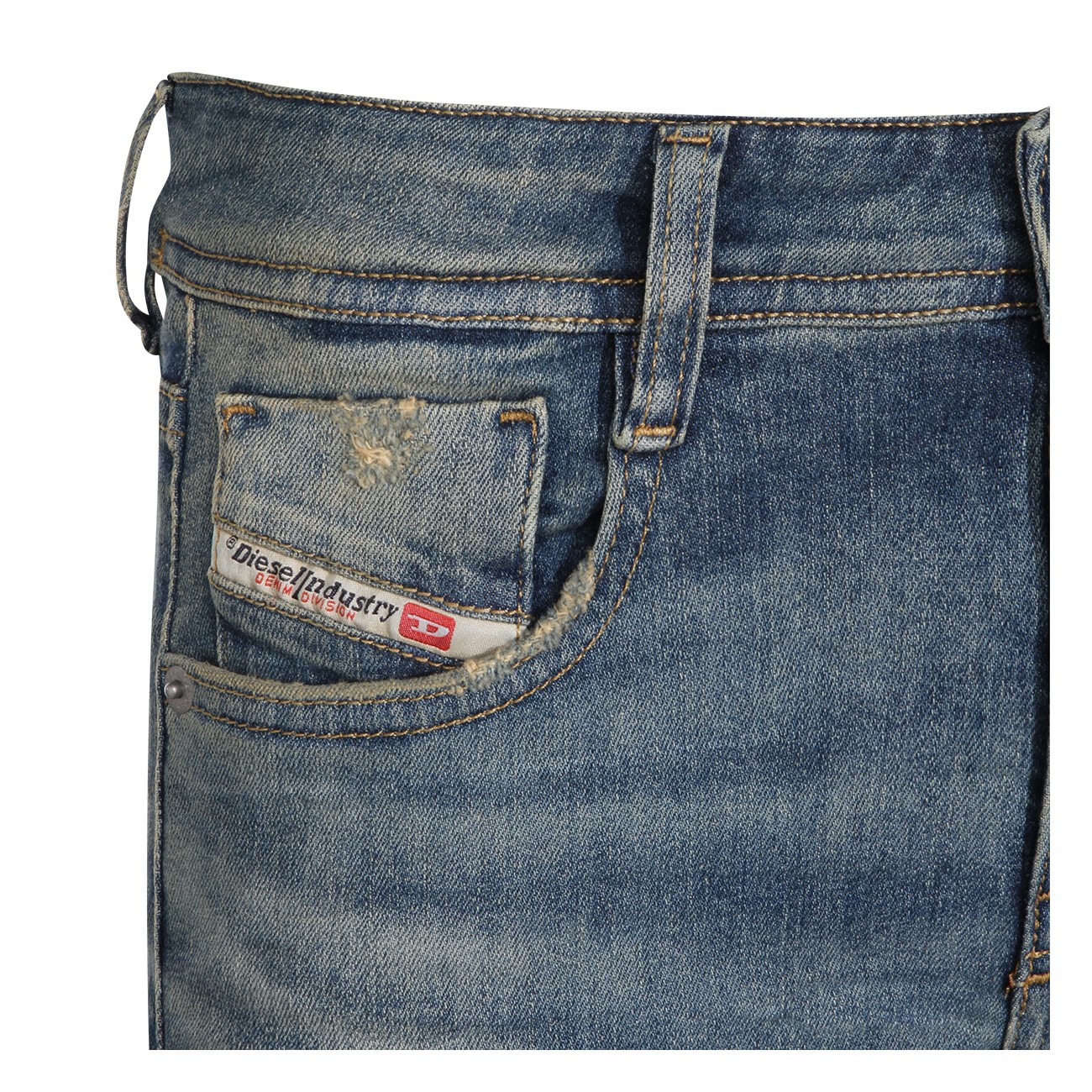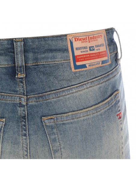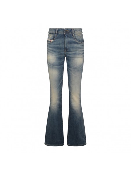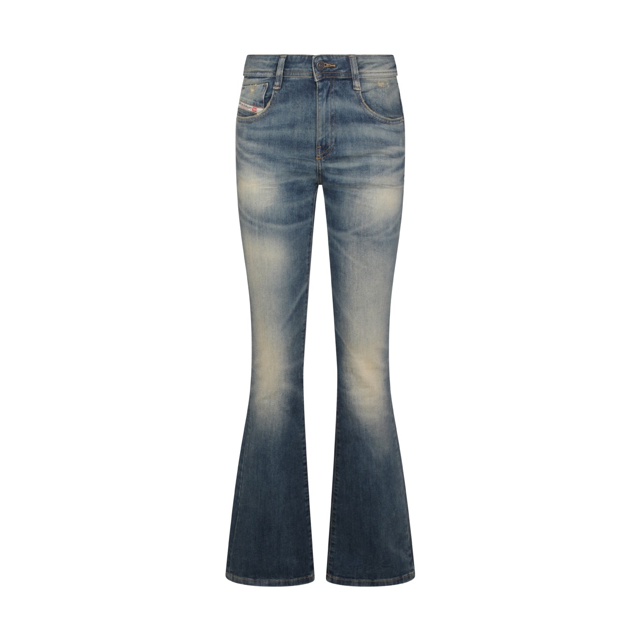 Blue cotton jeans from Diesel featuring mid waist, belt loops, zip fastening, pockets and wide length.
