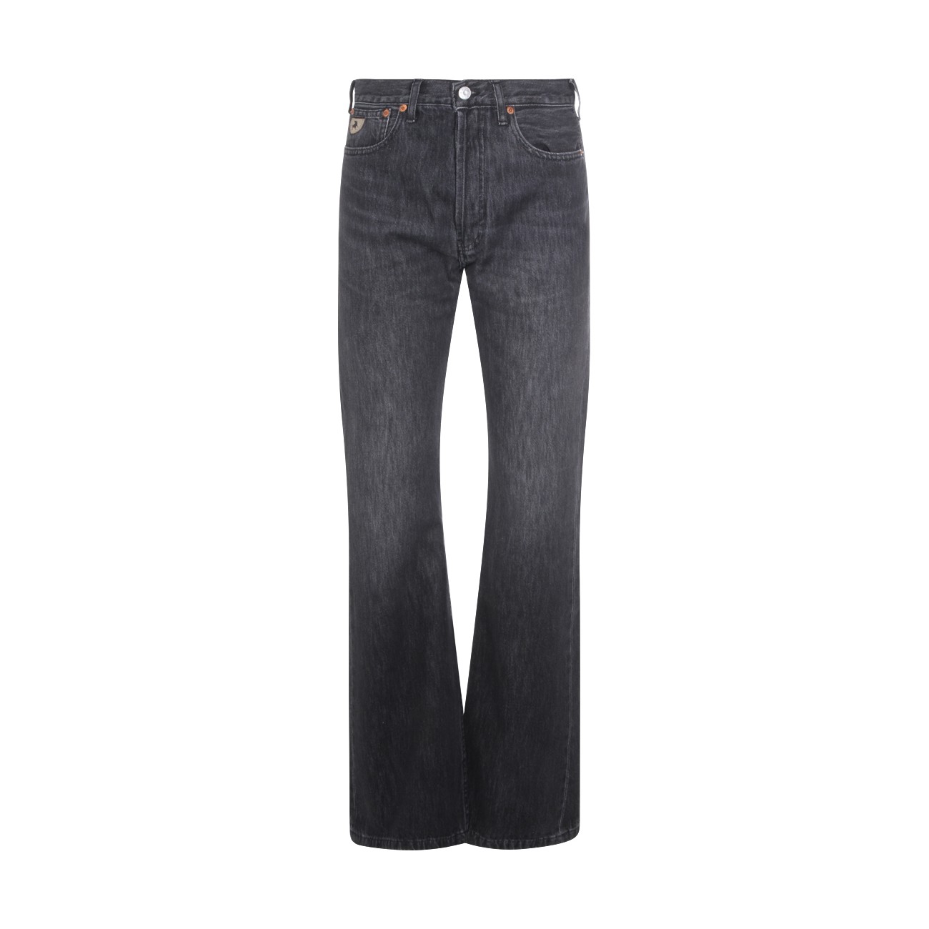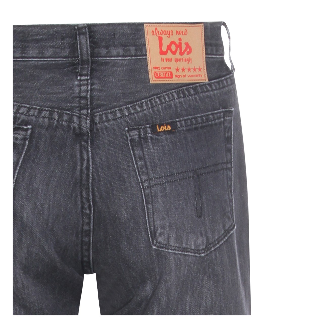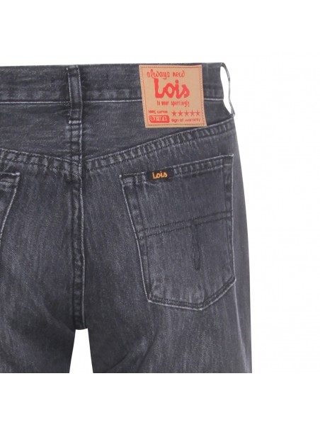 Black cotton jeans from Lois Jeans featuring high waist, belt loops, zip fastening, pockets and wide leg.
