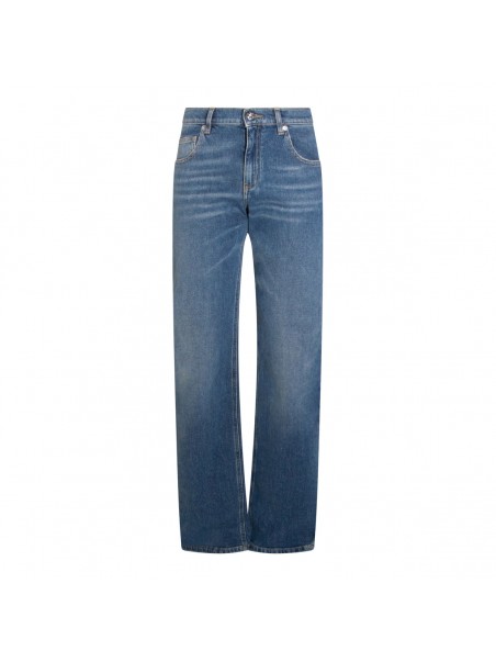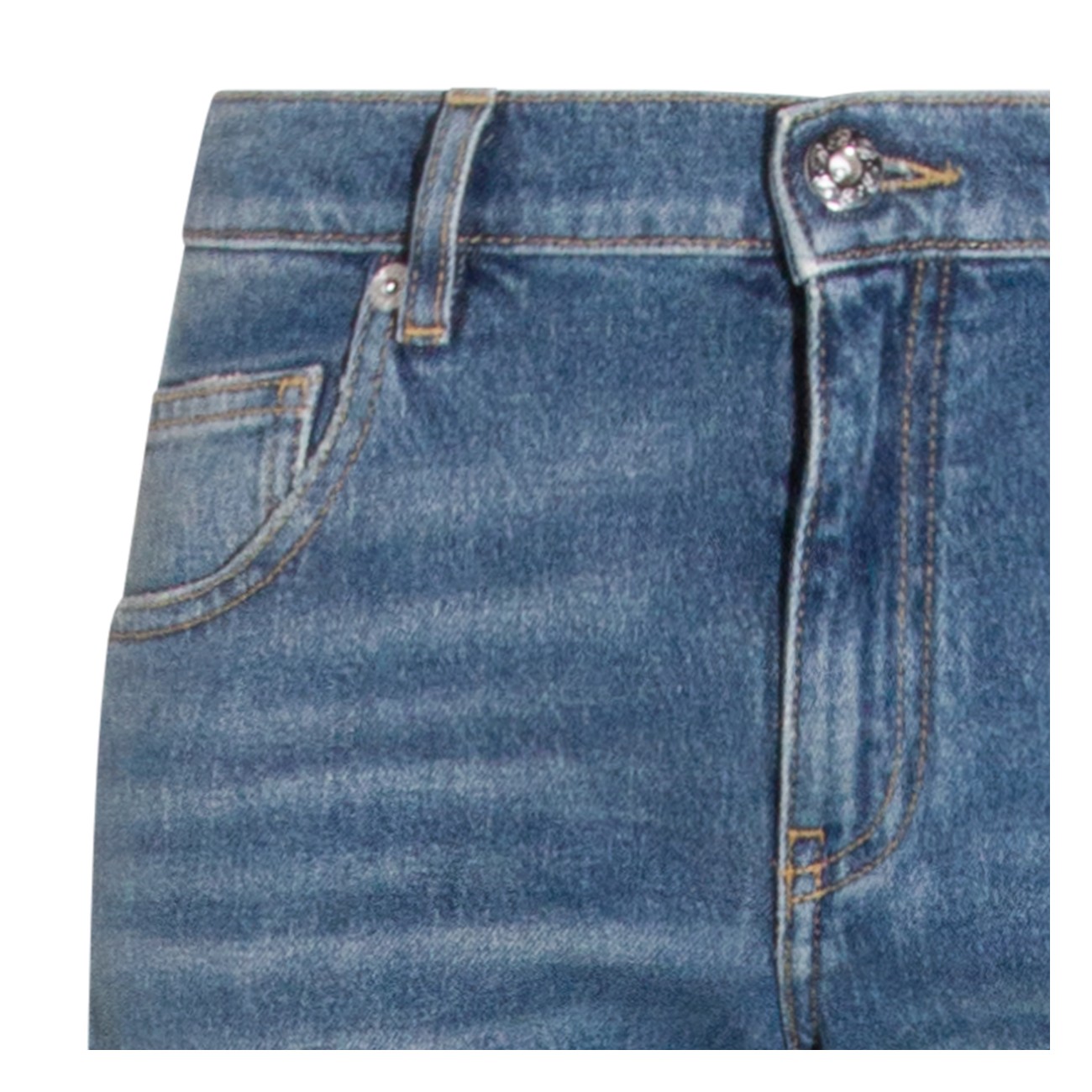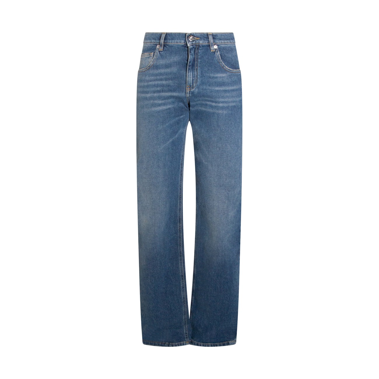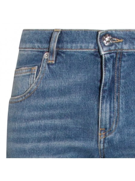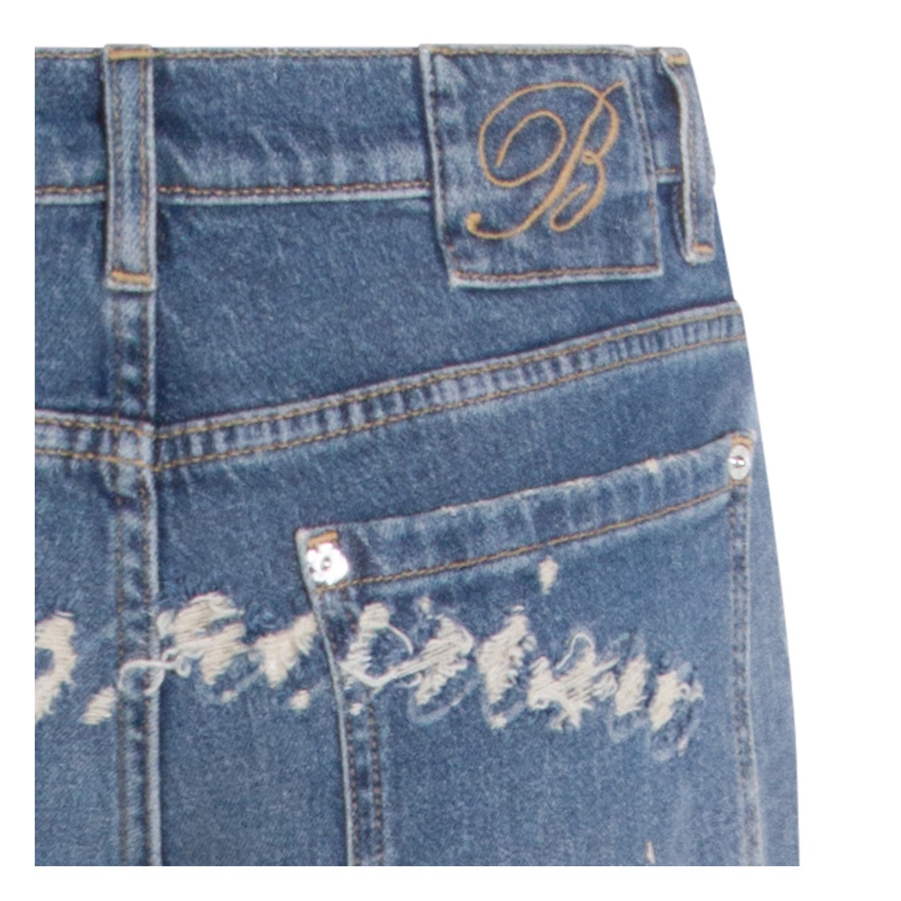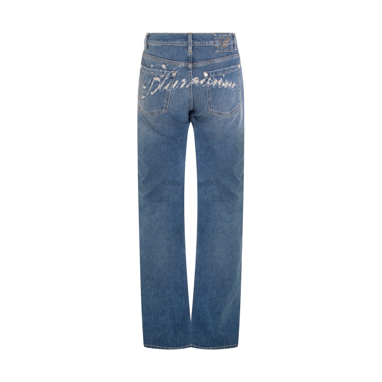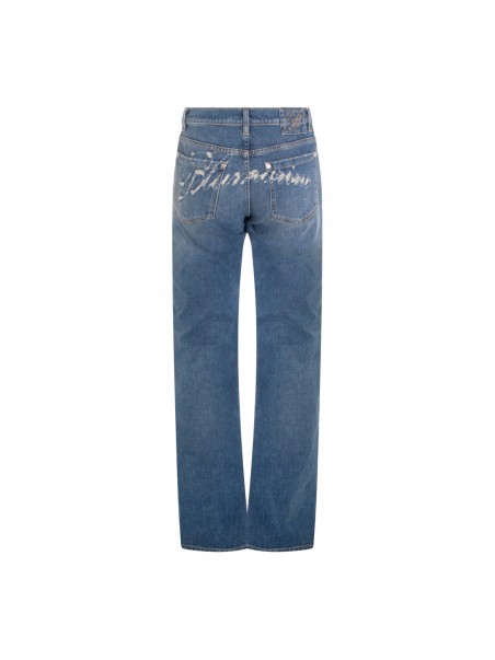 Blue cotton jeans from Blumarine featuring high waist, belt loops, button and zip fastening, five-pockets, straight leg and regular vestibility.