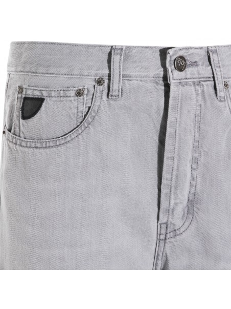 Luminous grey denim Loose Skater jeqans from Lois Jeans featuring wide leg, mid waist, belted waist, classic five pockets, zip closure fastening and logo label.