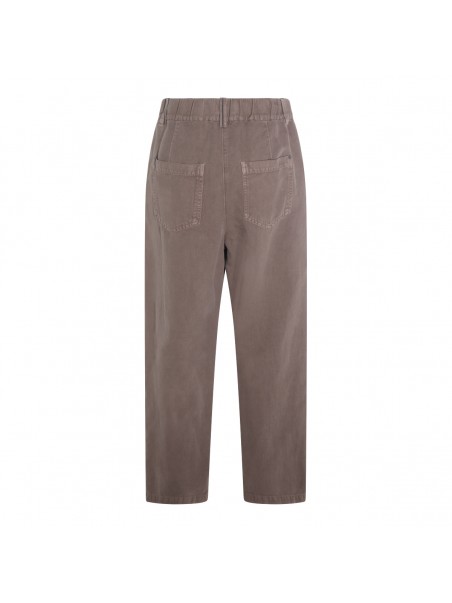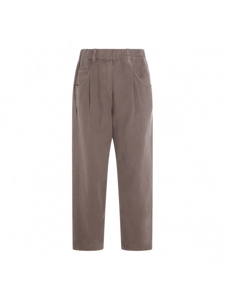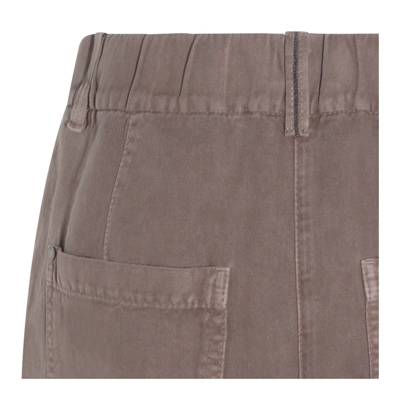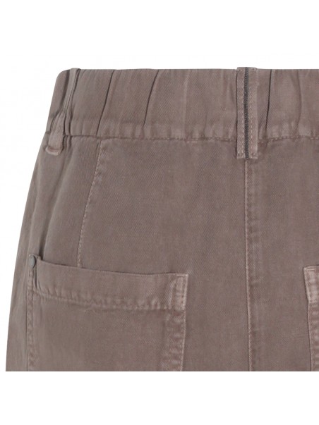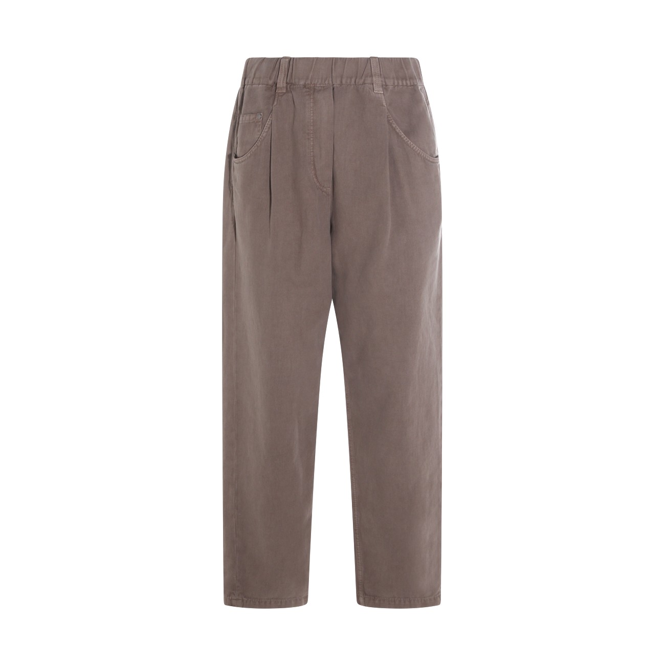 Earth brown cotton and linen blend pants from Brunello Cucinelli featuring regular fit, belted waist, side pockets and zip closure fastening.