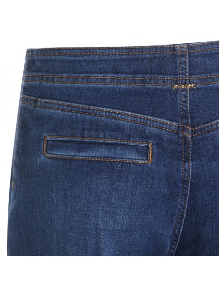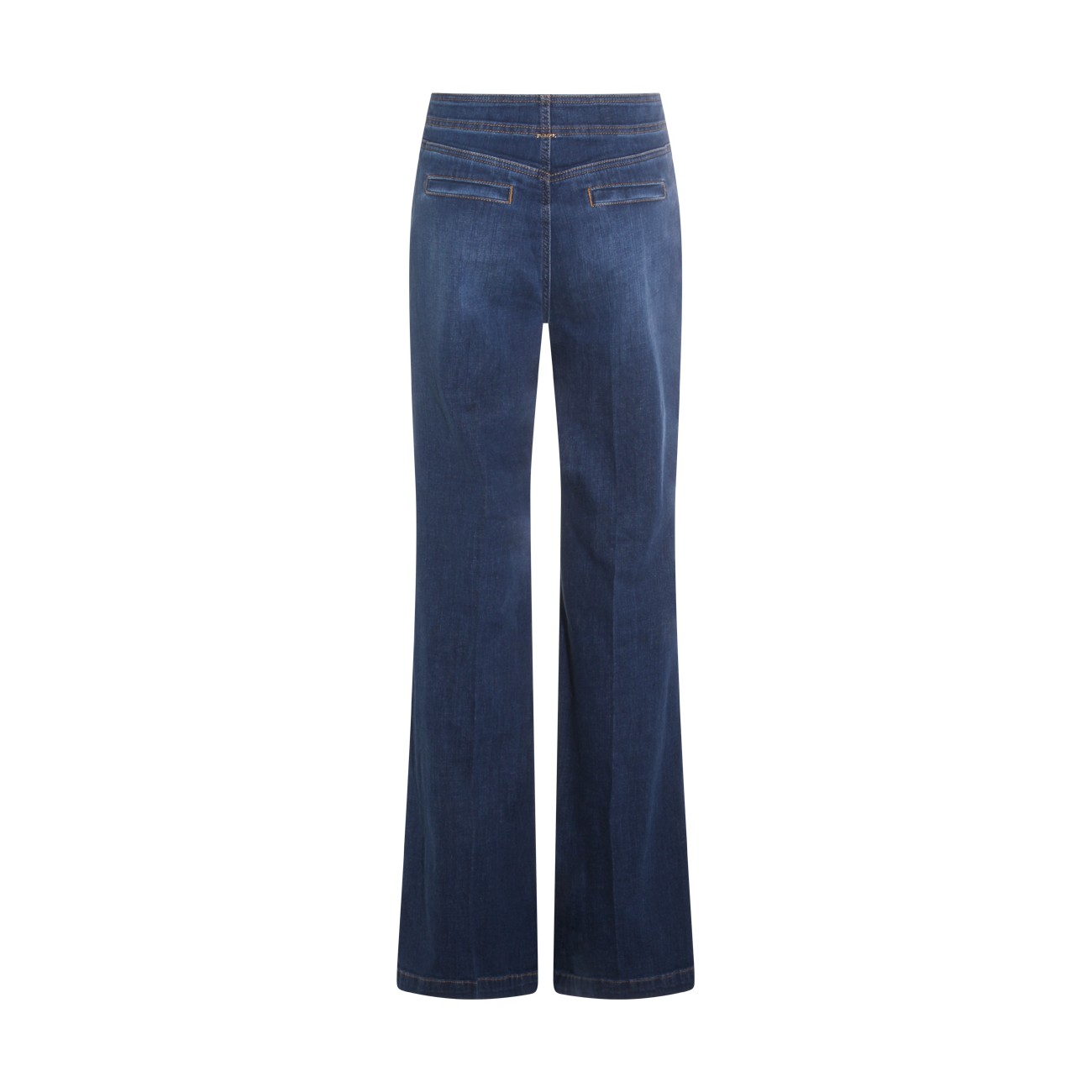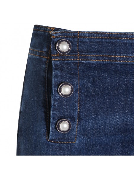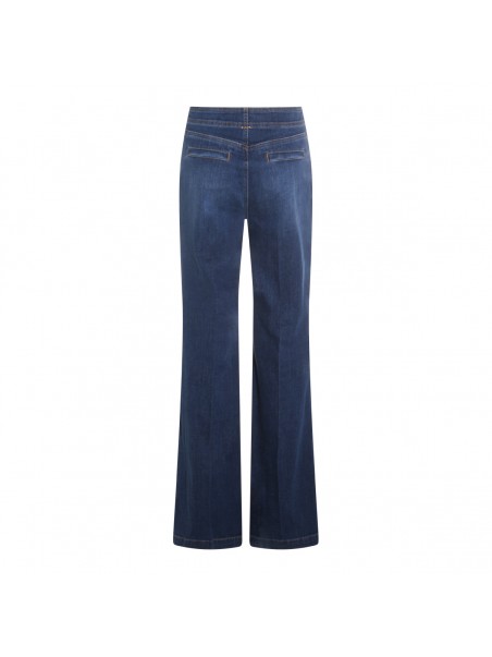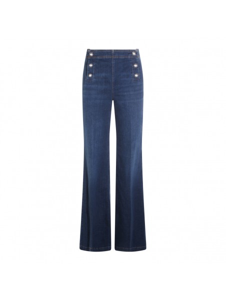 Dark blue cotton denim jeans from Twinset featuring buttons fastening, back pockets, wide leg and regular fit.