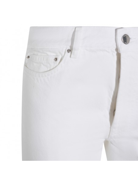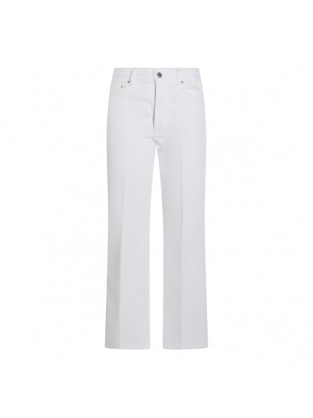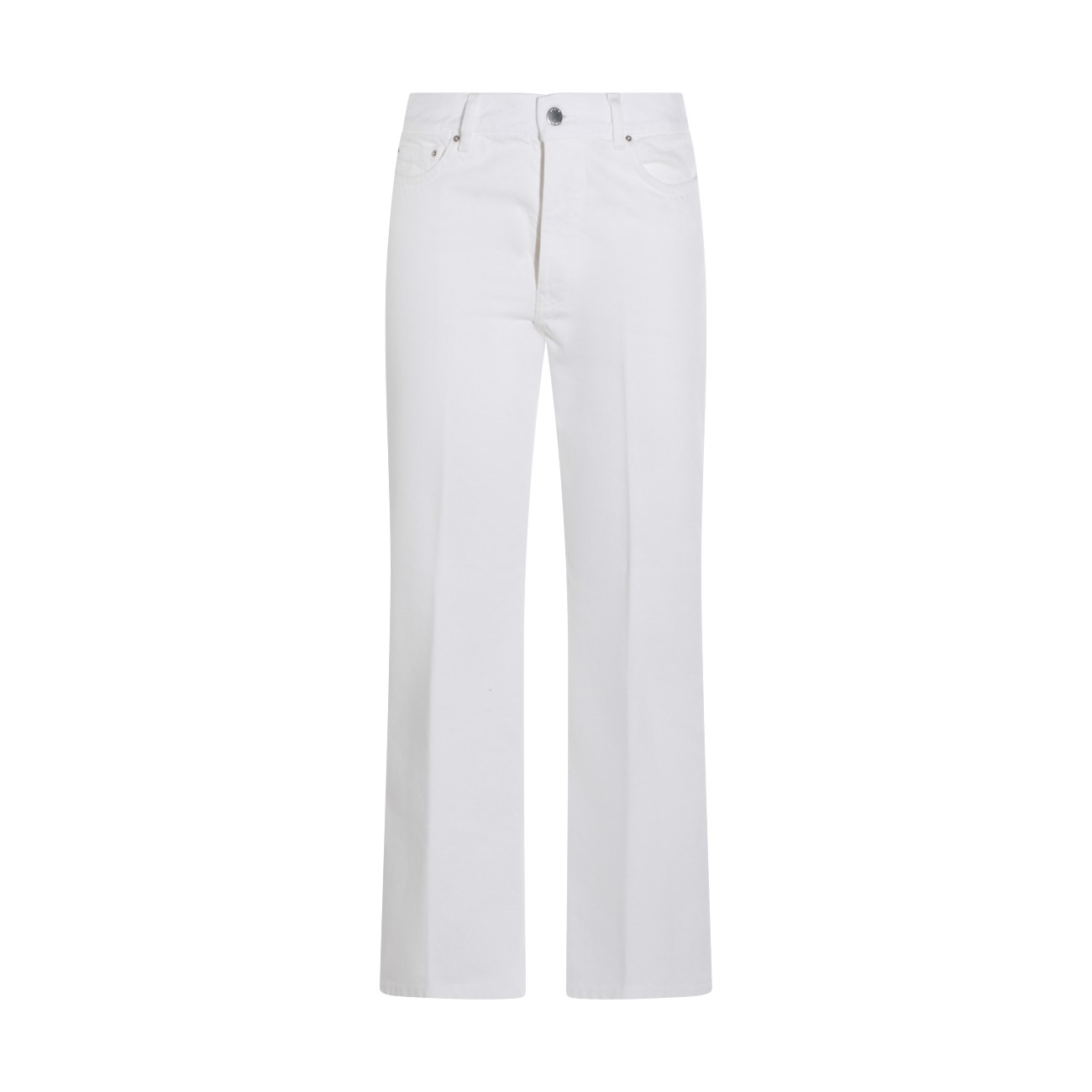 Off white cotton jeans from Toteme featuring button and zip fastening, belt loops, classic pockets, back logo and regular vestibility.