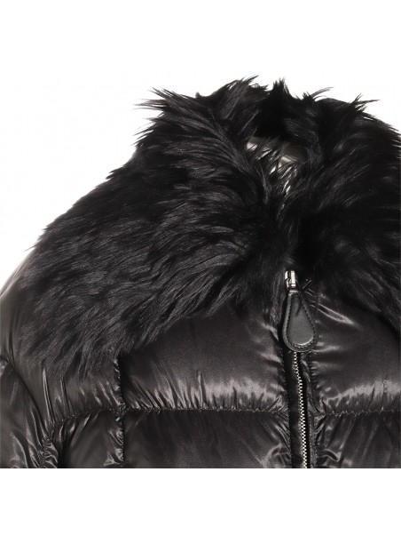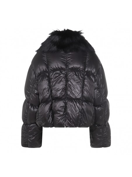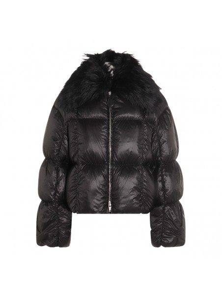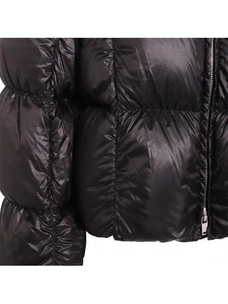 Black down jacket from Jil Sander featuring long sleeves, pockets, zip fastening and collar with details.