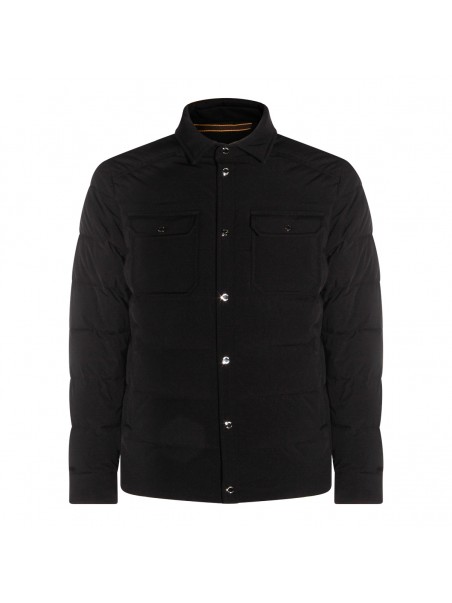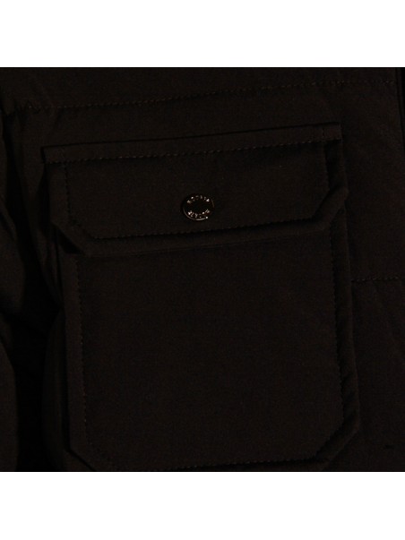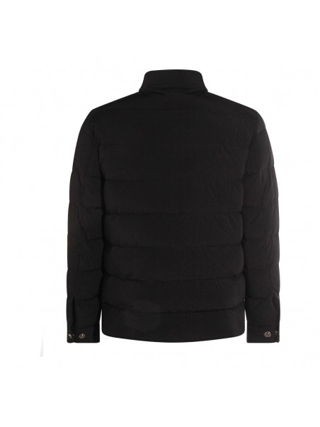 Dark blue Veton down jacket from Moorer featuring high collar, long sleeves, buttons fastening and regular vestibility.