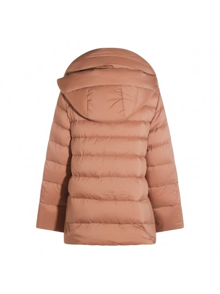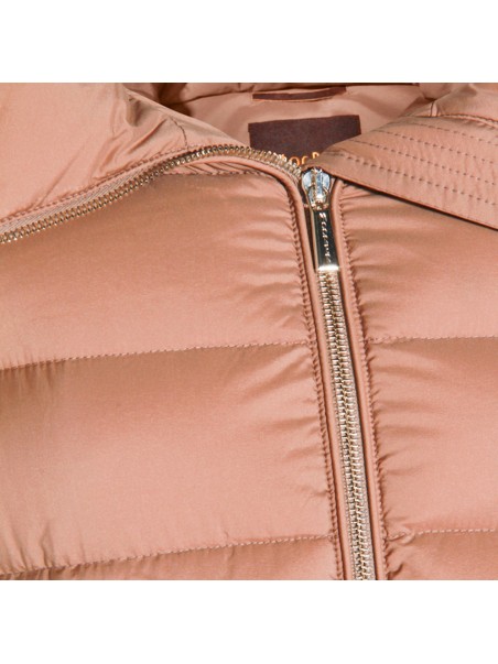 Camel Natalia down jacket from Moorer featuring long sleeves, high collar, zip fastening and pockets.
