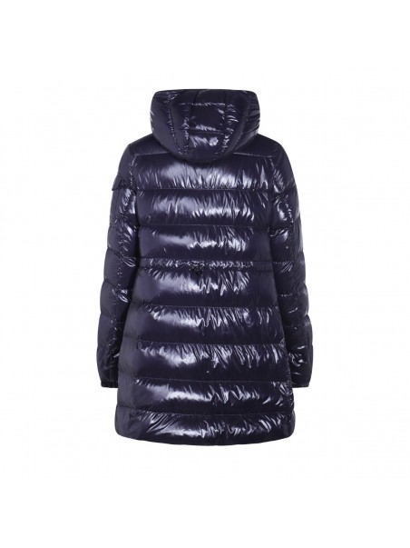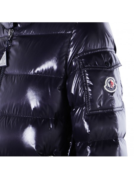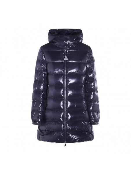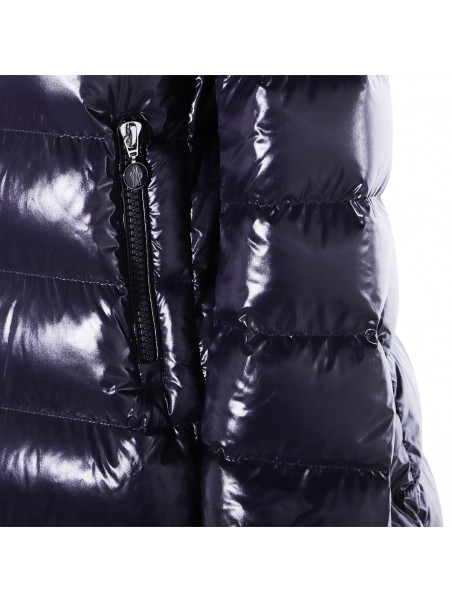 Navy Courcelles down jacekt from Moncler featuring mid line, long sleeves, hoodie, zip closure at front, side pockets and logo details.