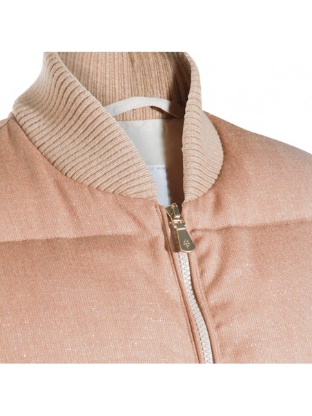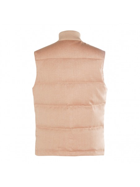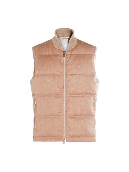 Sand wool down jacket from Eleventy featuring high collar, sleeveless, zip fastening, pockets and regular vestibility.