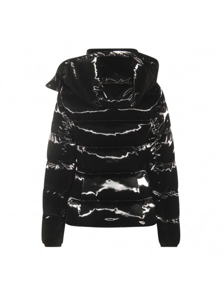 Black down jacket from Mackage featuring long sleeves, high collar, hood, zip fastening and regular vestibility.