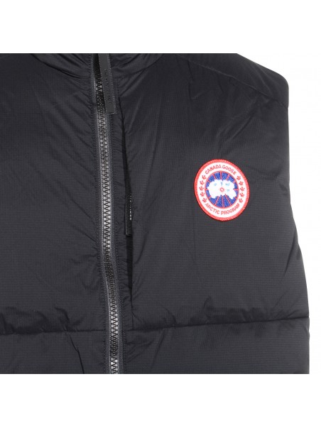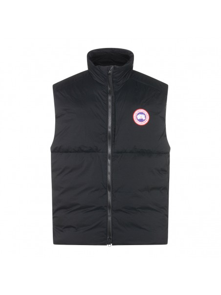 Black down jacket from Canada Goose featuring high collar, sleeveless, heart logo patch, zip fastening and regular vestibility.