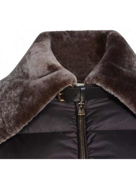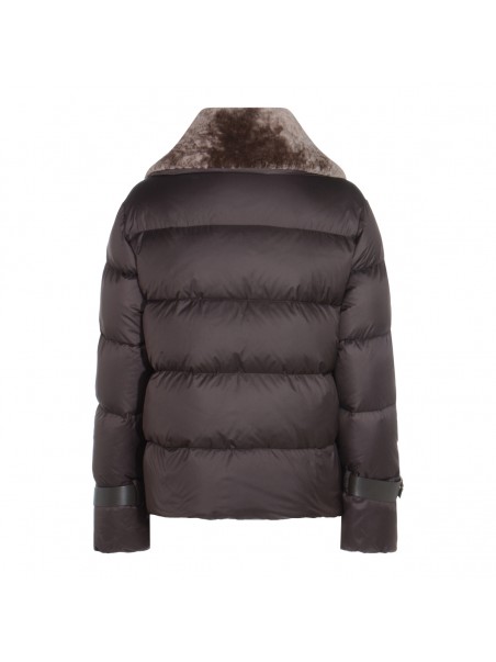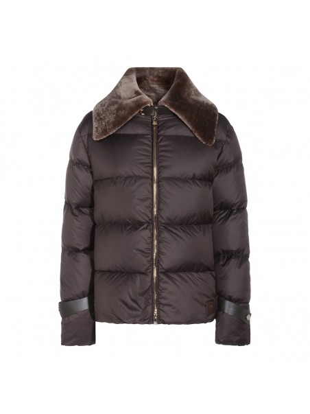 Brown down jacket from Fendi featuring fur collar, long sleeves, padded, zip fastening, buckled cuffs and regular vestibility.