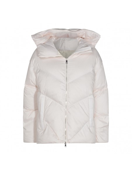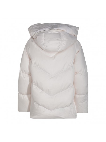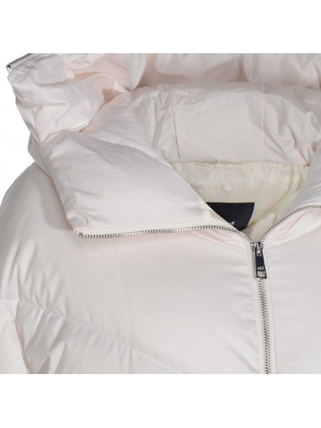 White down jacket from ADD featuring high collar, hood, padded, long sleeves, zip fastening, pockets and regular vestibility.
