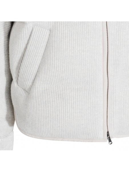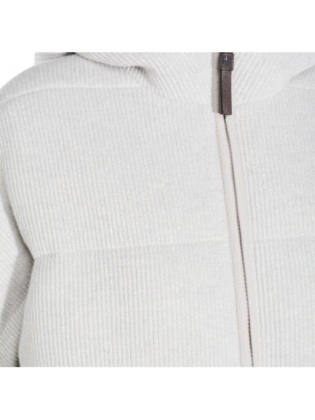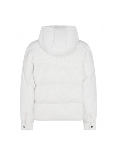White wool down jacket from Brunello Cucinelli featuring high collar, hood, long sleevs, padded, zip fastening and regular vestibility.