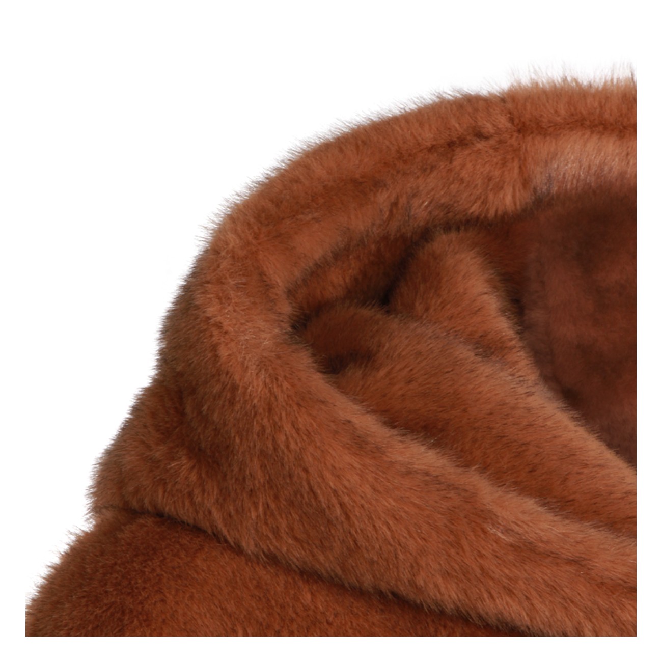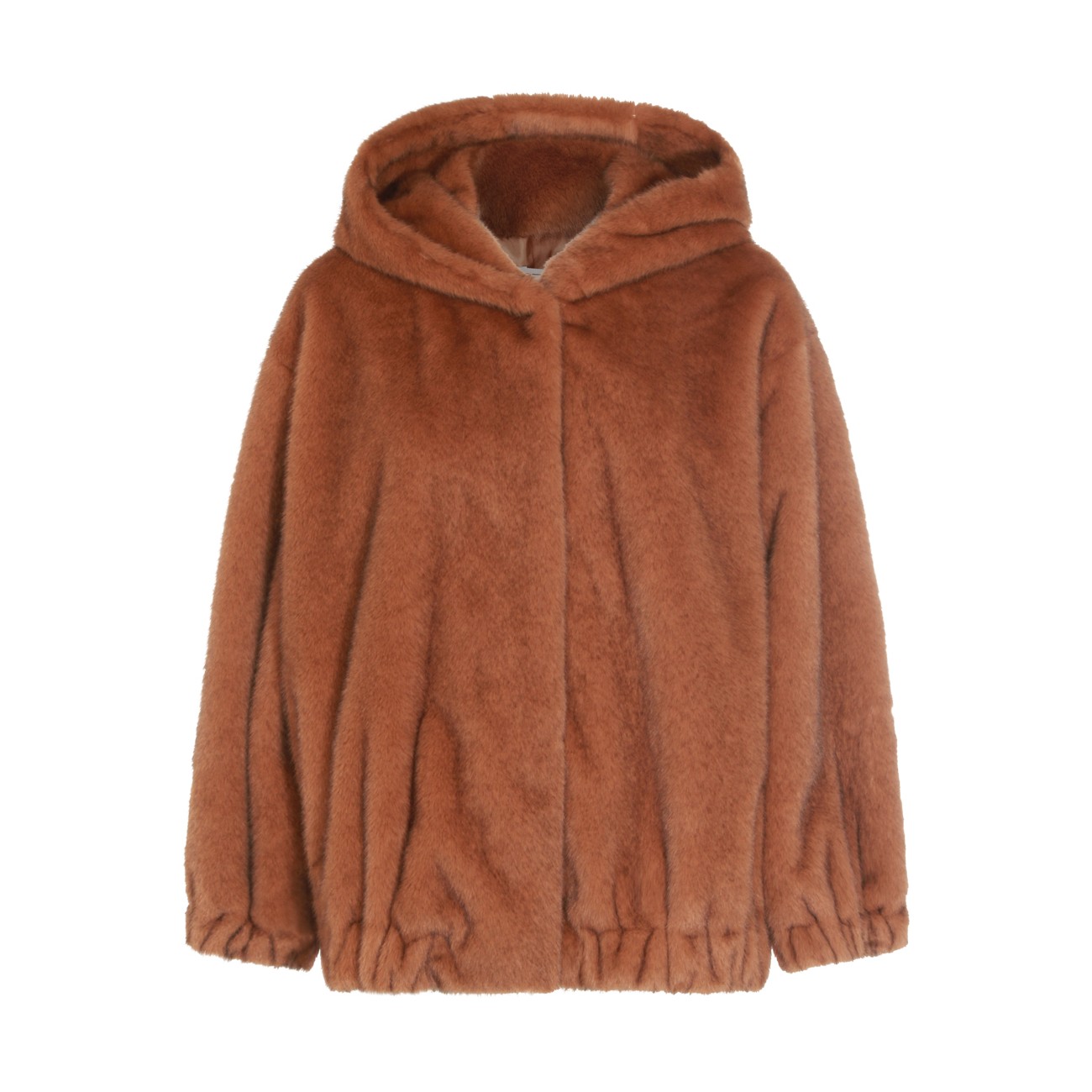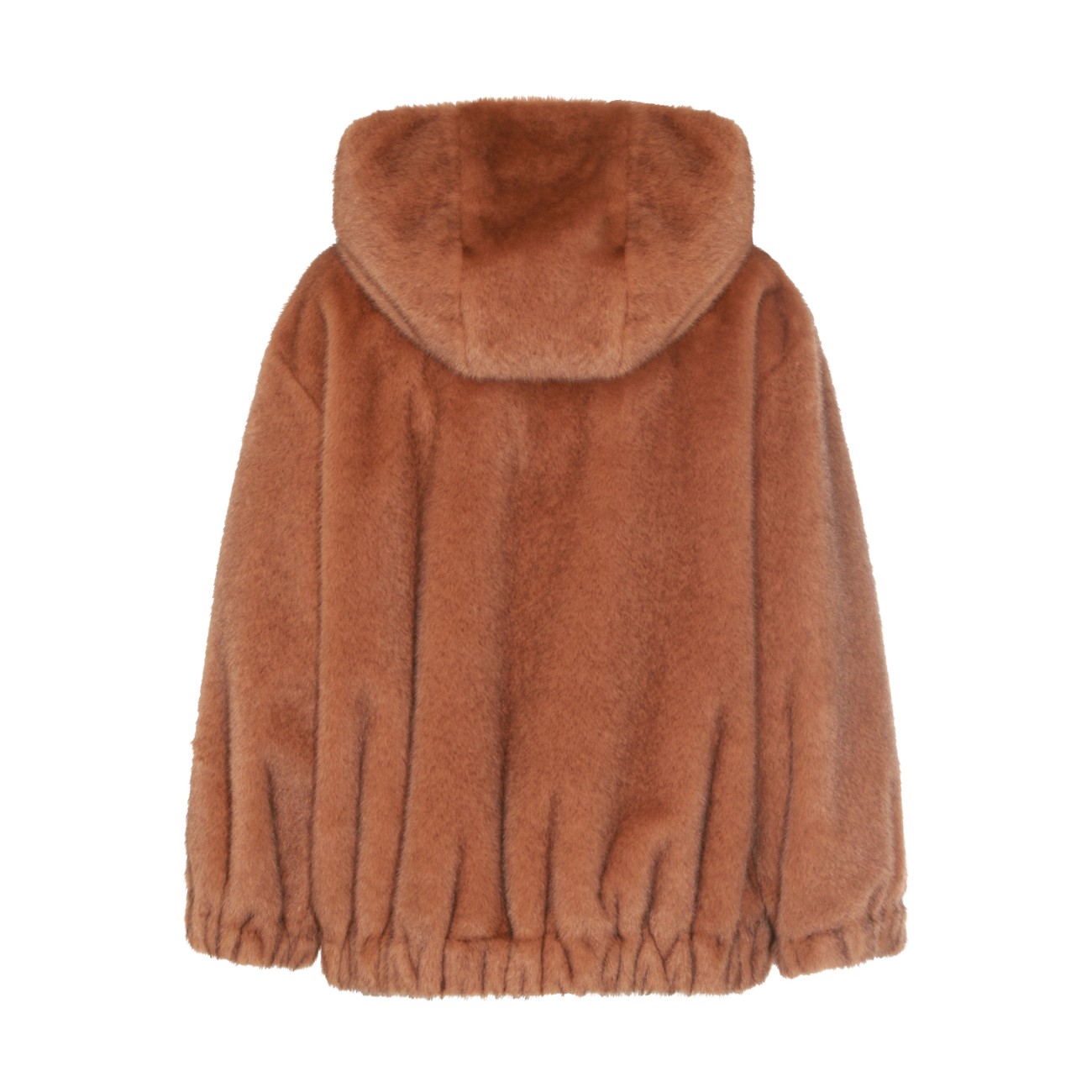 Brown Girella fur jacket from Antonelli Firenze featuring hood, fur, long sleeves, elasticated cuffs and hem and regular vestibility.
