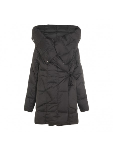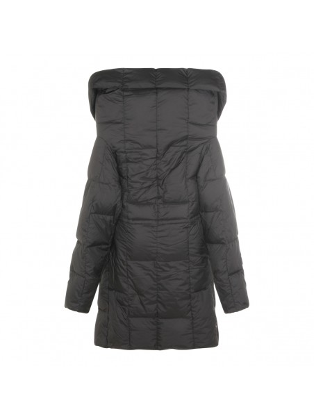 Black down jacket from ADD featuring wide collar, long sleeves, quilted, frontal fastening, asymmetrical closure and regular vestibility.