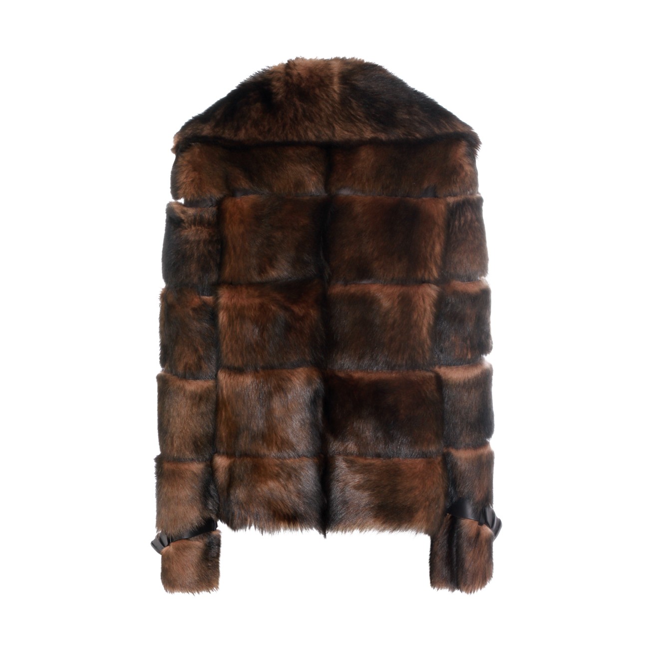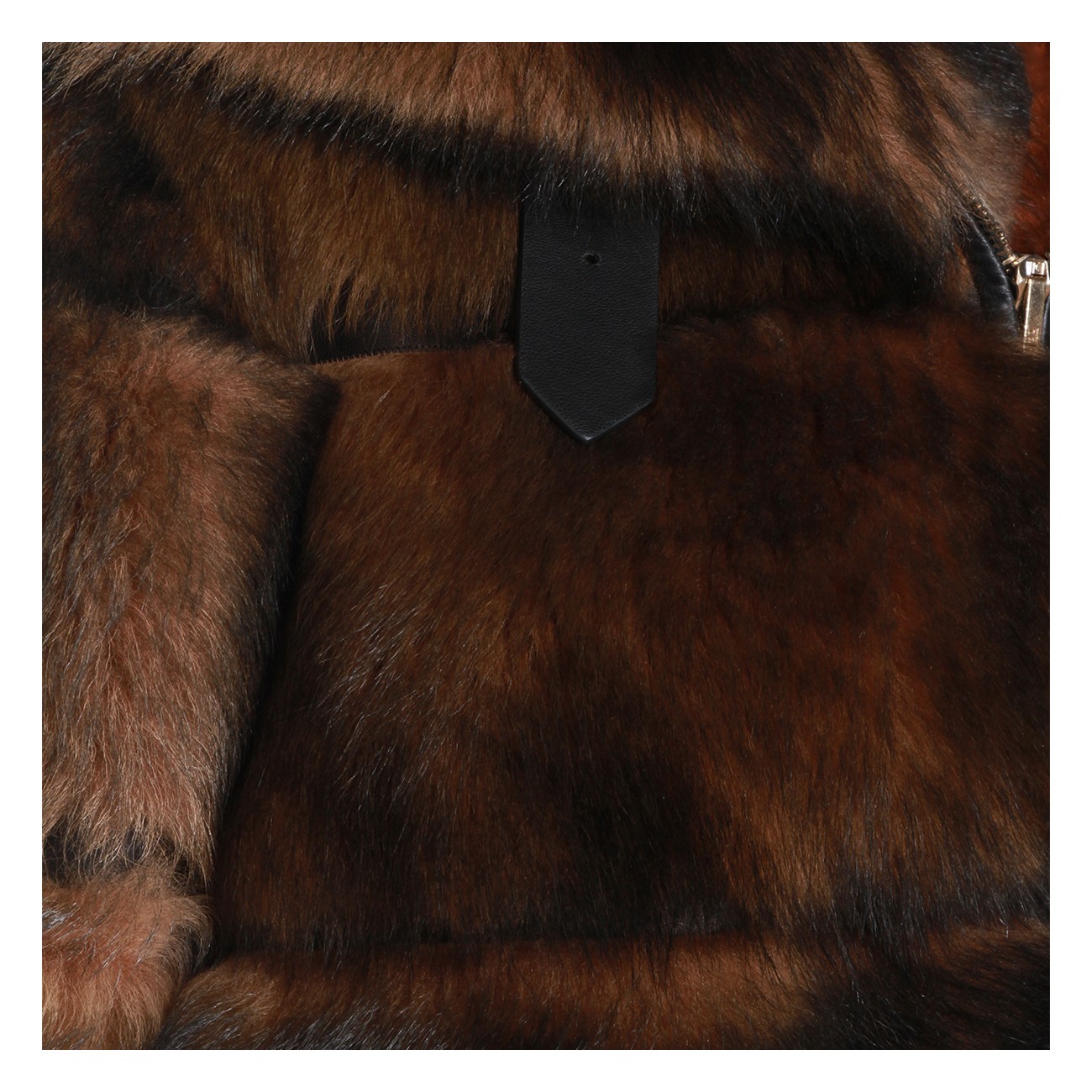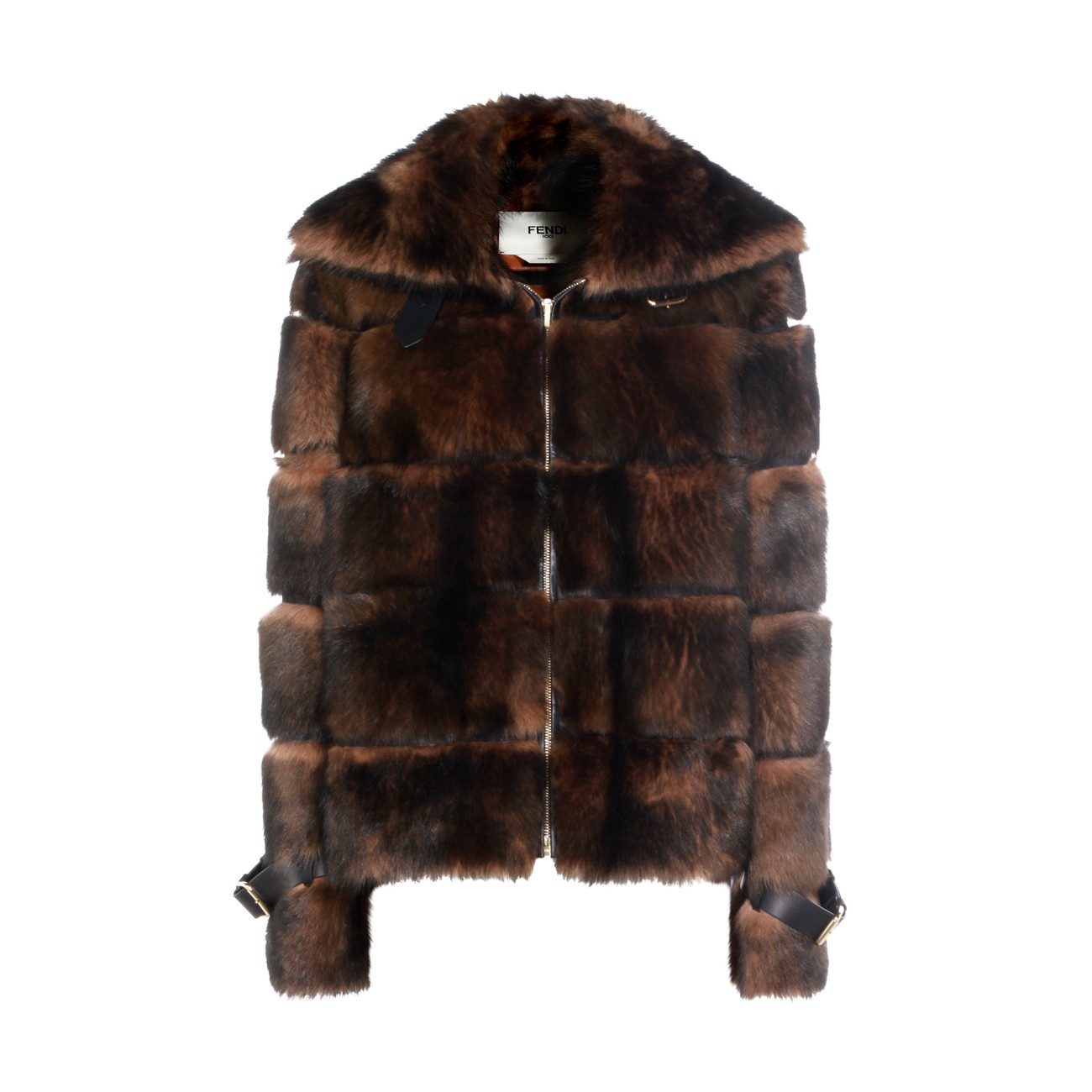 Brown fur jacket from Fendi featuring wide collar, long sleeves, zip fastening, buckle details and fur.