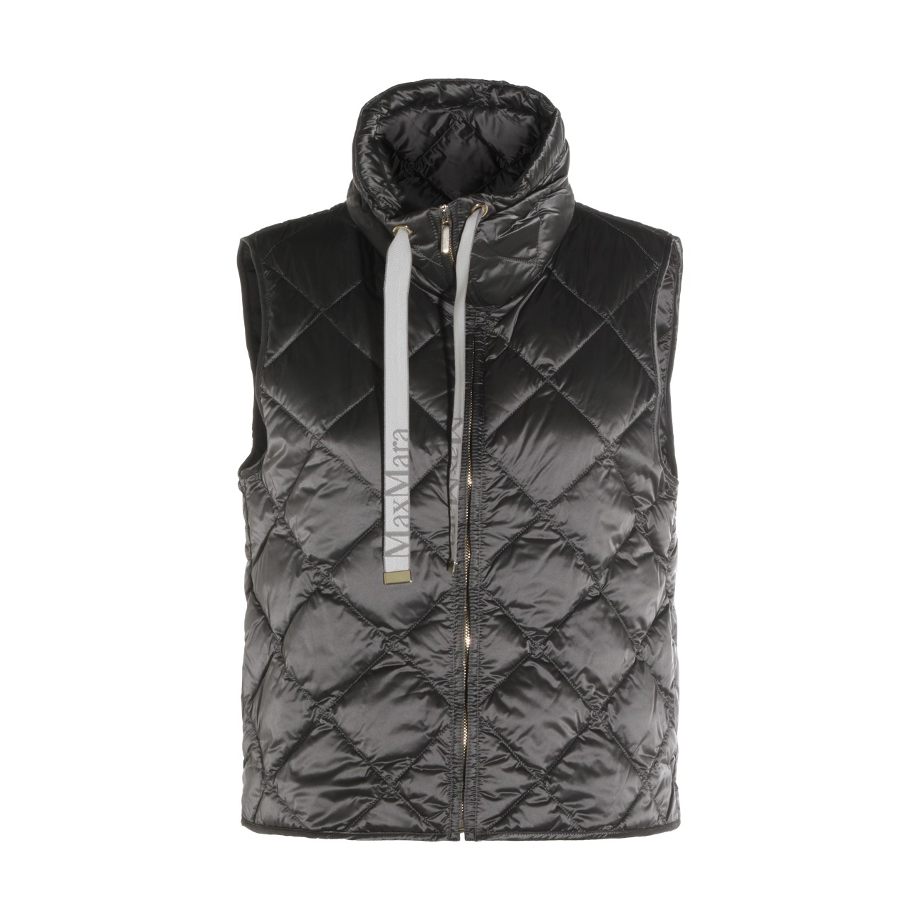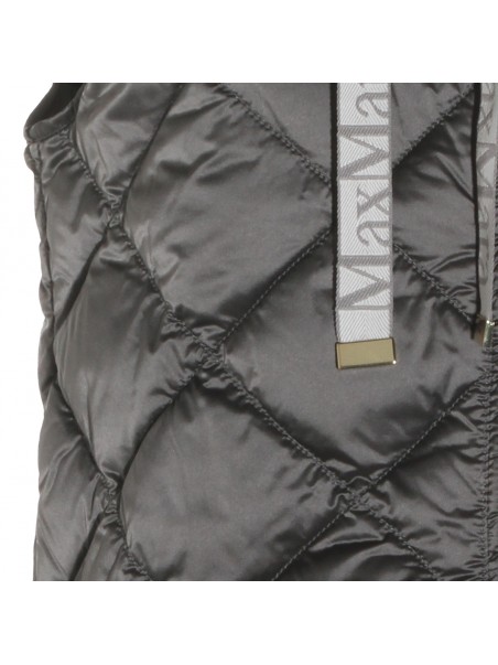 Dark grey down jacket from Max Mara The Cube featuring hood, zip fastening, sleeveless, padded and regular vestibility.