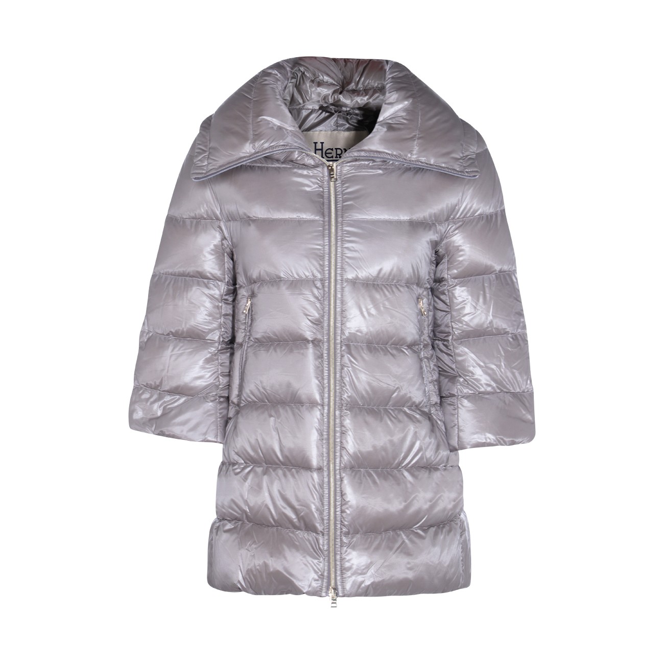 Grey down jacket from Herno featuring long sleeves, zip fastening, lucid effect and pockets.