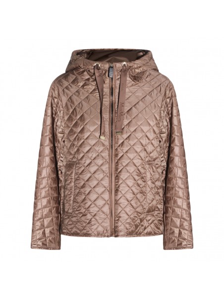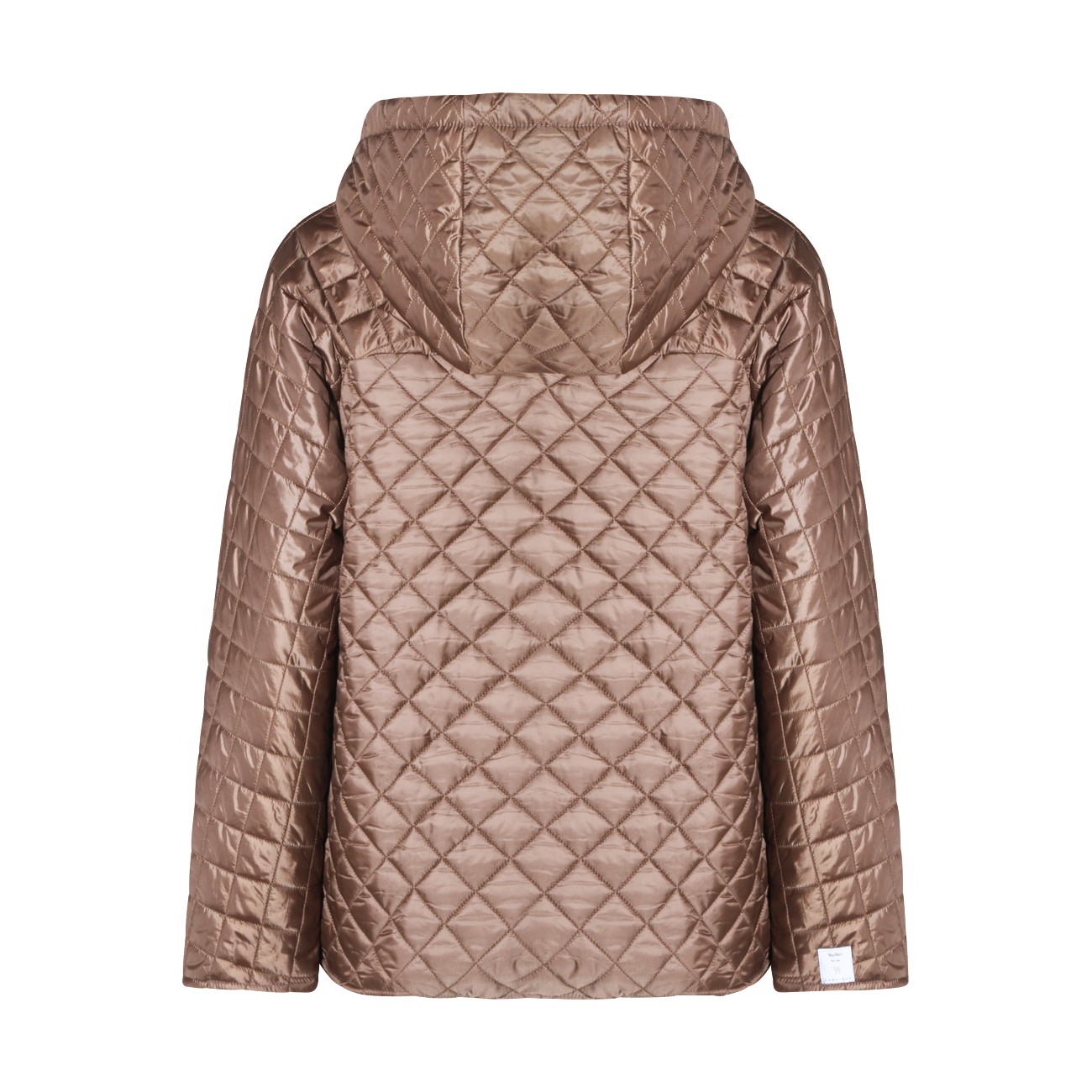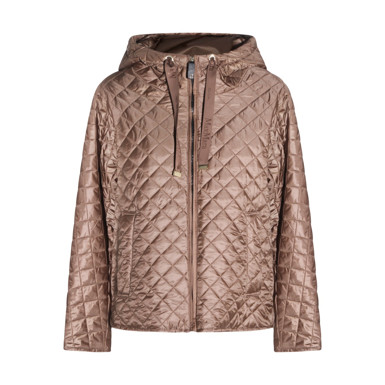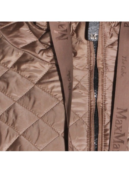 Beige down jacket from Max Mara The Cube featuring long sleeves, hood, zip fastening and pockets.