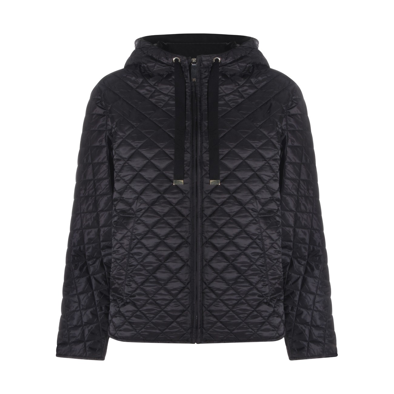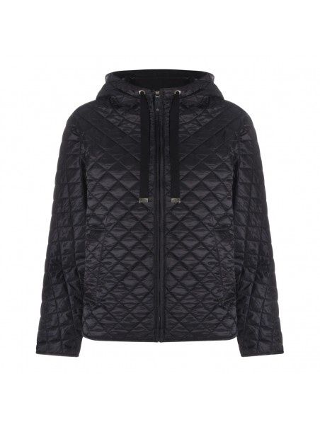 Black Giorno down jacket from Max Mara The Cube featuring hood, drawstrings, long sleeves and zip fastening.