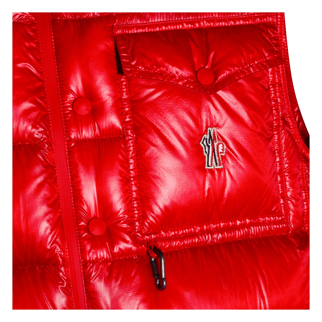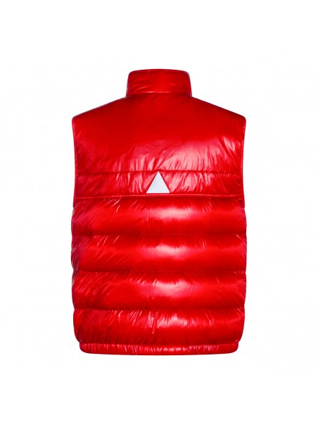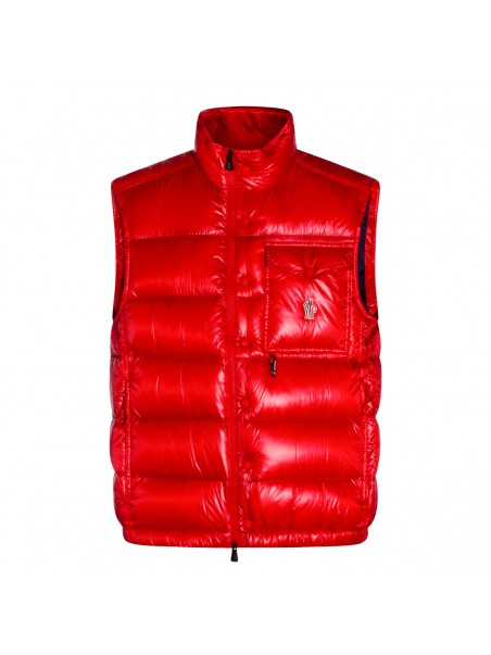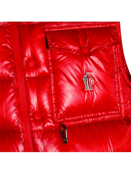 Red Uychi down jacket from Moncler Grenoble featuring sleeveless, high neck, zip fastening, frontal pocket, logo patch and regular vestibility.