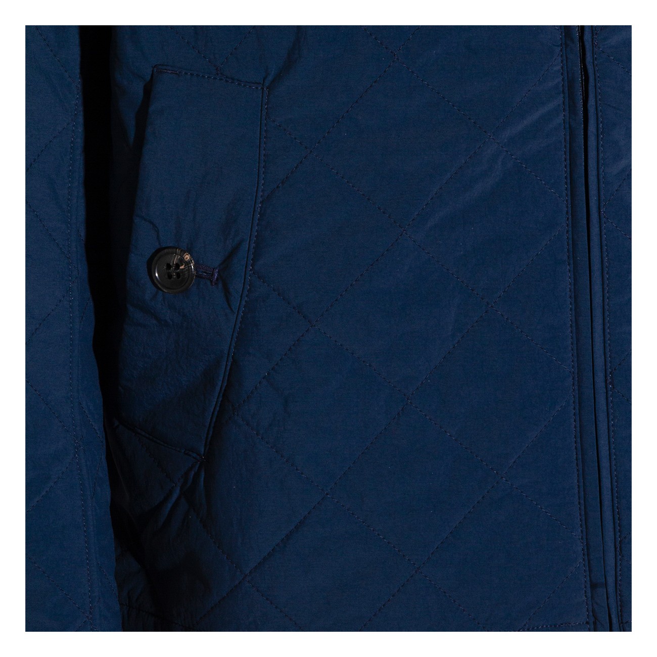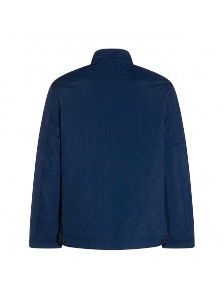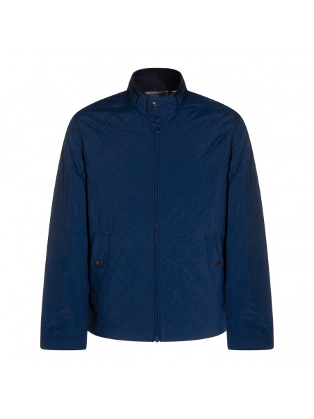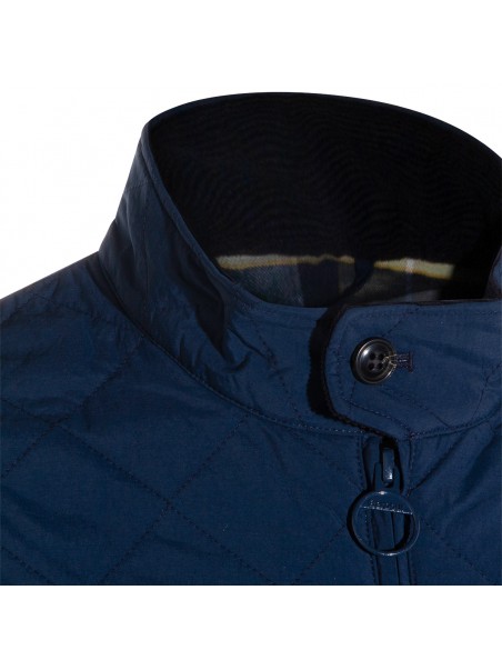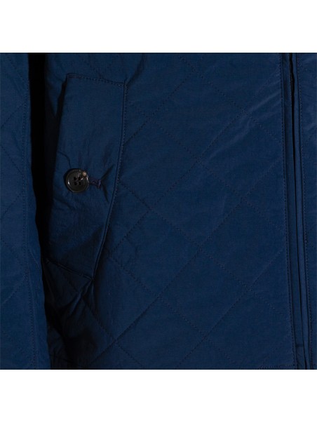 Navy Tynedise down jacket from Barbour featuring long sleeves, high neck, button and zip fastening, pocket with button closure and regular vestibility.