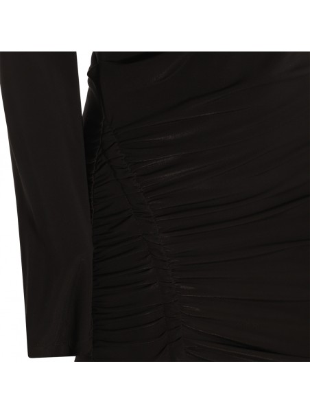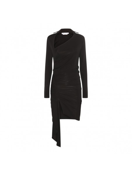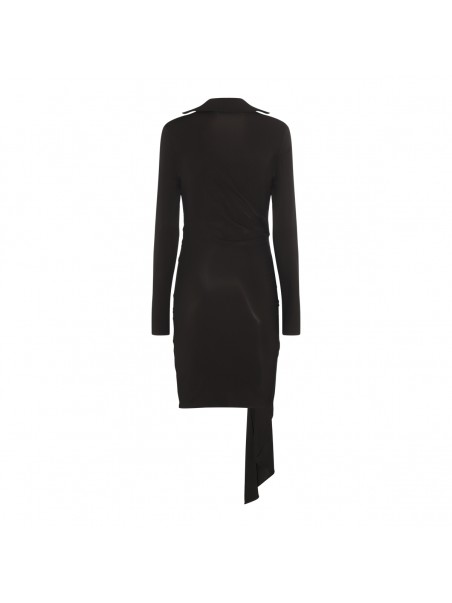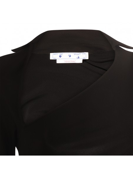 Black viscose stretch dress from Off-White featuring long sleeves, stretch fit, asymmetrical line, mid length and V neck.