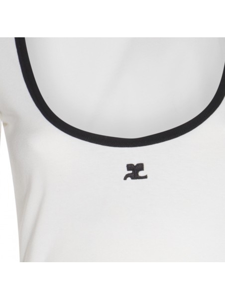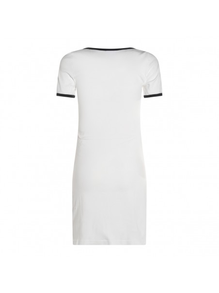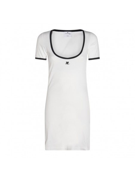 White cotton mini dress from Courreges featuring short sleeves, round collar, frontal logo, mini length and regular vestibility.