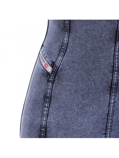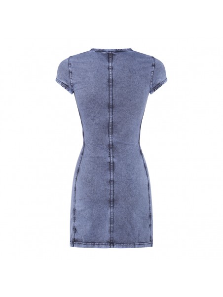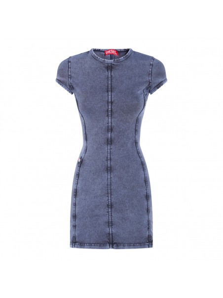 Blue dress from Diesel featuring round collar, short sleeves, mini lenght and slim fit.